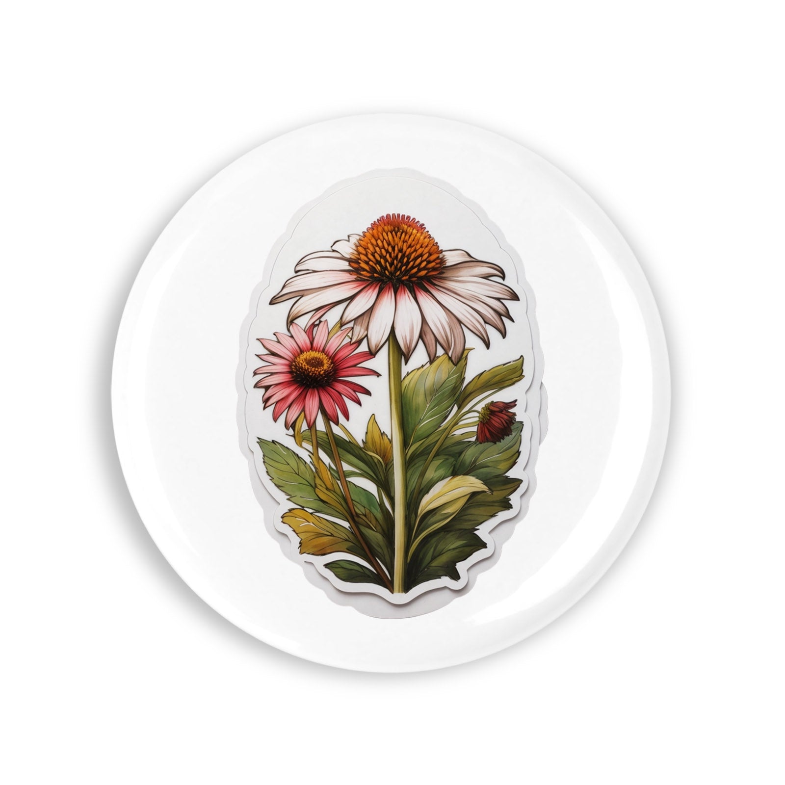 Set 4 insigne, Flori de echinacea, NO8122, Metal, 44 mm, Multicolor