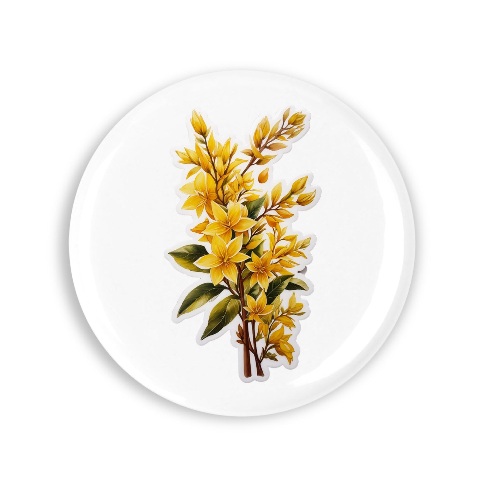 Set 4 insigne, Flori de Forsitia, NO8181, Metal, 44 mm, Multicolor
