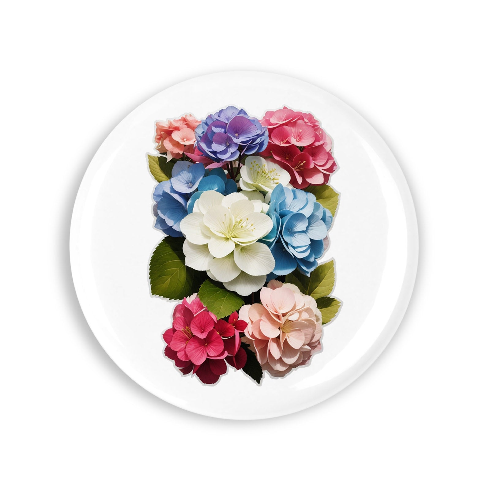 Set 4 insigne, Flori de hortensia, NO8360, Metal, 44 mm, Multicolor