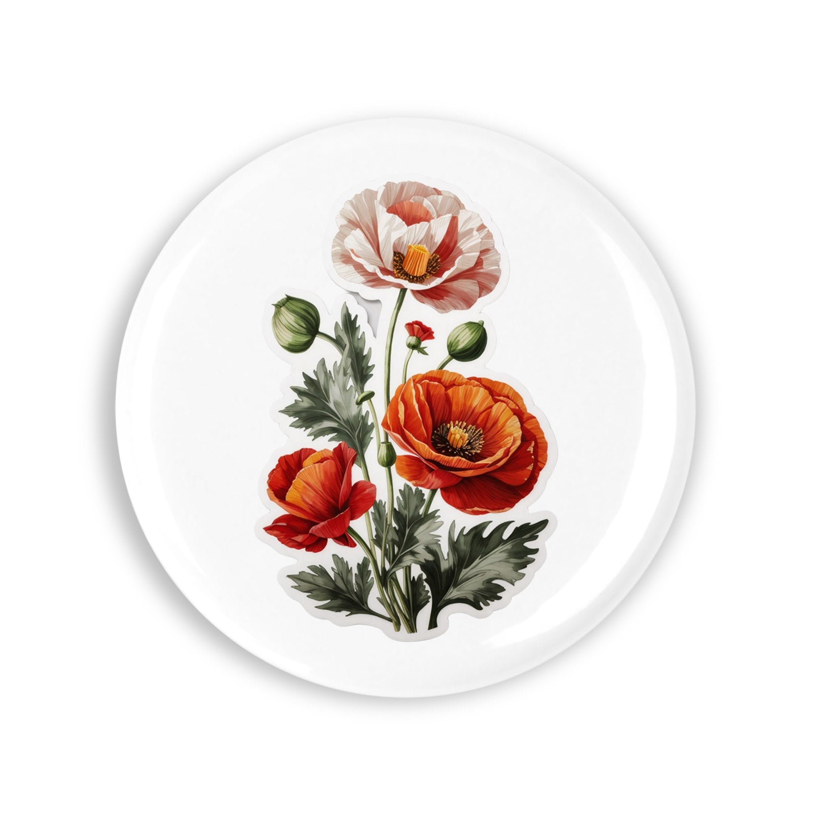 Set 4 insigne, Flori de mac cu boboci, NO8754, Metal, 44 mm, Multicolor