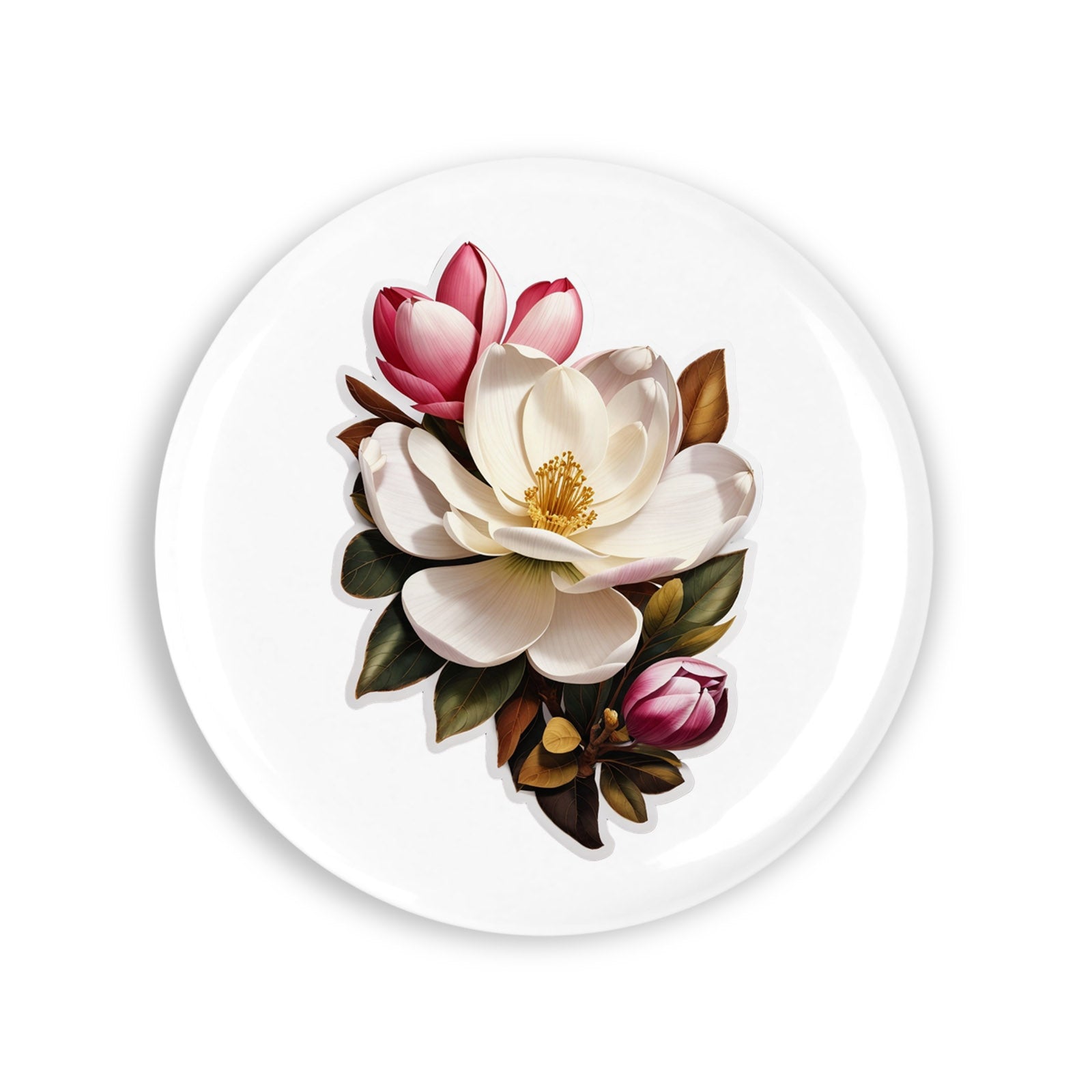 Set 4 insigne, Flori de magnolia, NO8489, Metal, 44 mm, Multicolor