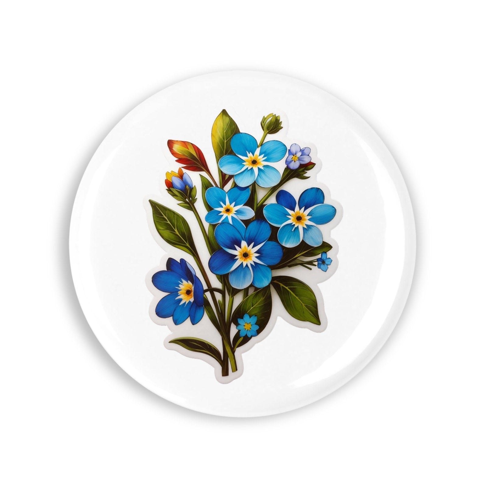 Set 4 insigne, Flori de Nu ma uita cu boboci, NO8177, Metal, 44 mm, Multicolor