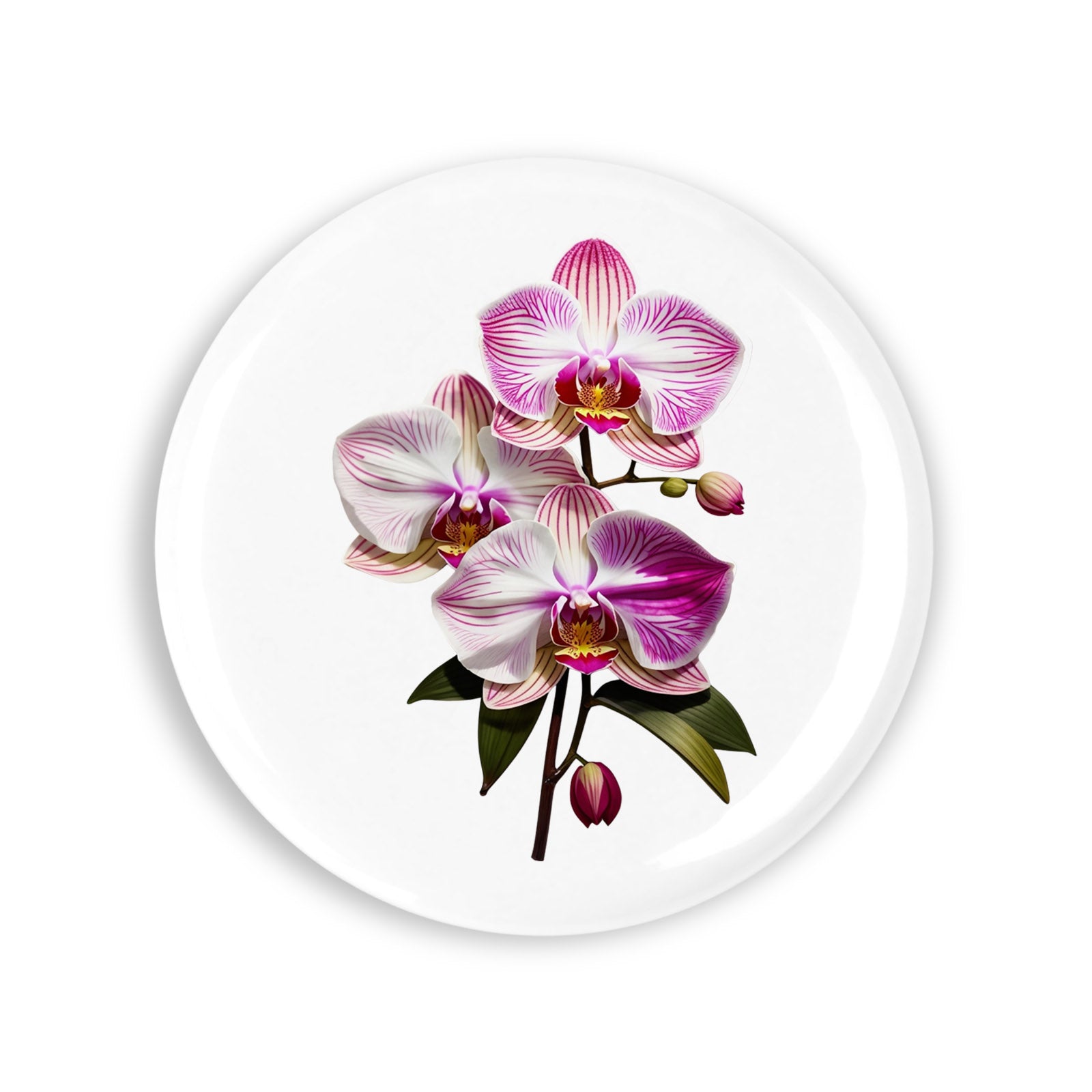 Set 4 insigne, Flori de orhidee cu boboci, NO8634, Metal, 44 mm, Multicolor