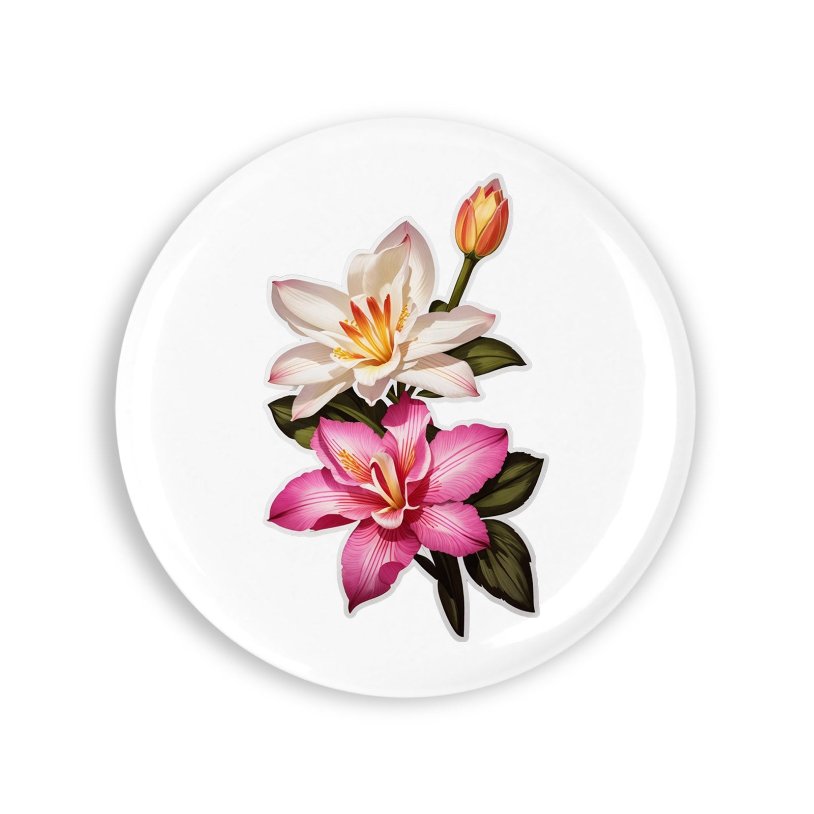 Set 4 insigne, Flori de orhidee Laelia, NO8412, Metal, 44 mm, Multicolor