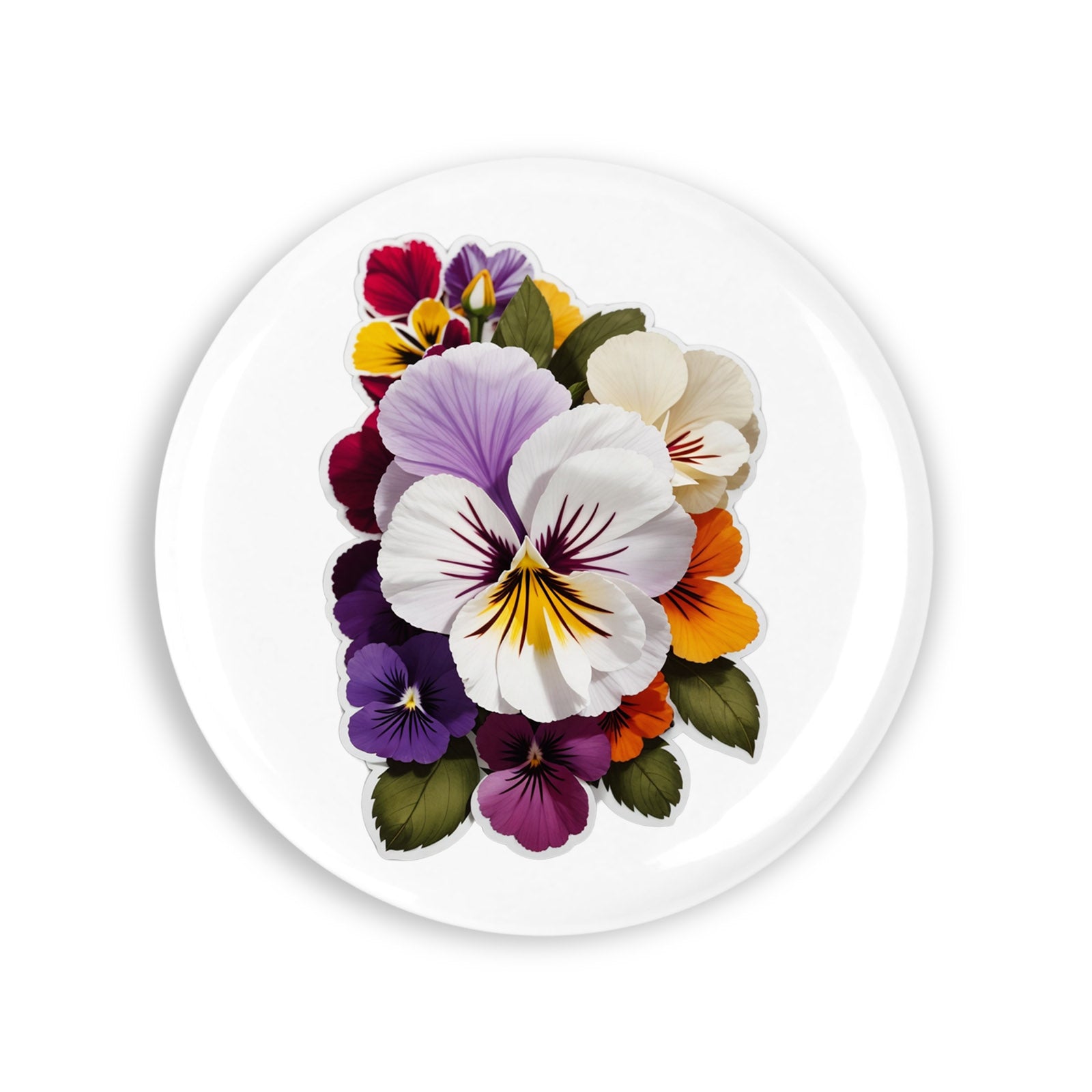 Set 4 insigne, Flori de panselute, NO8665, Metal, 44 mm, Multicolor