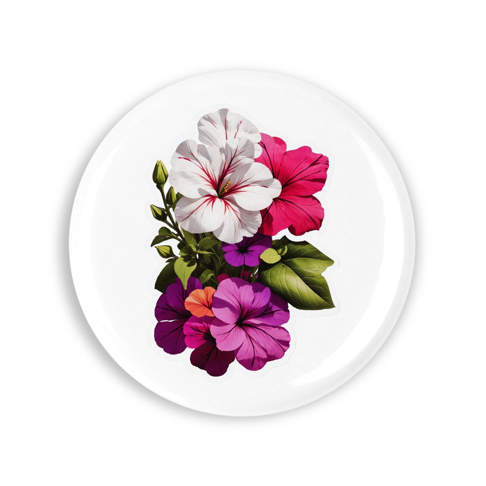 Set 4 insigne, Flori de petunii, NO8701, Metal, 44 mm, Multicolor