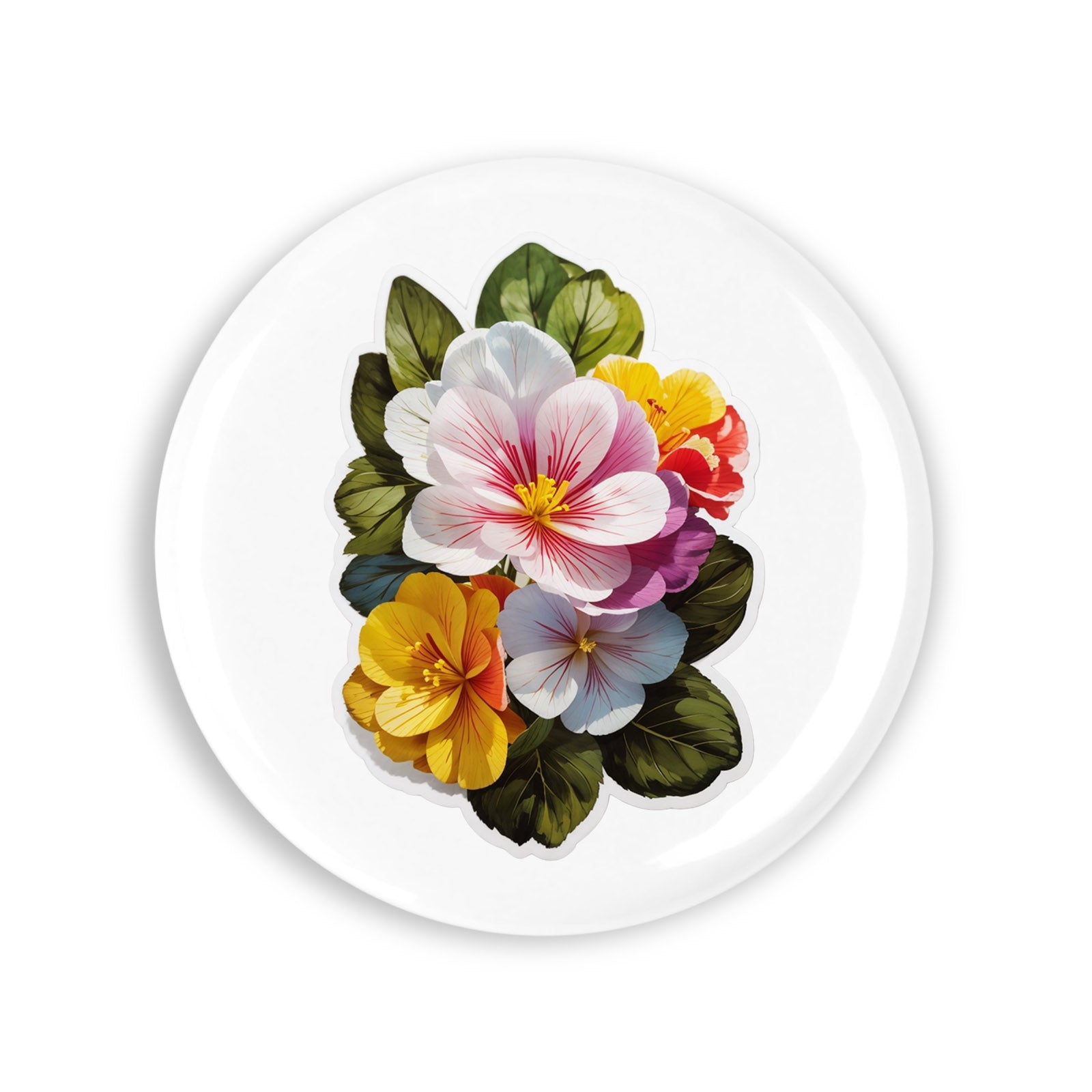 Set 4 insigne, Flori de primula, NO8773, Metal, 44 mm, Multicolor