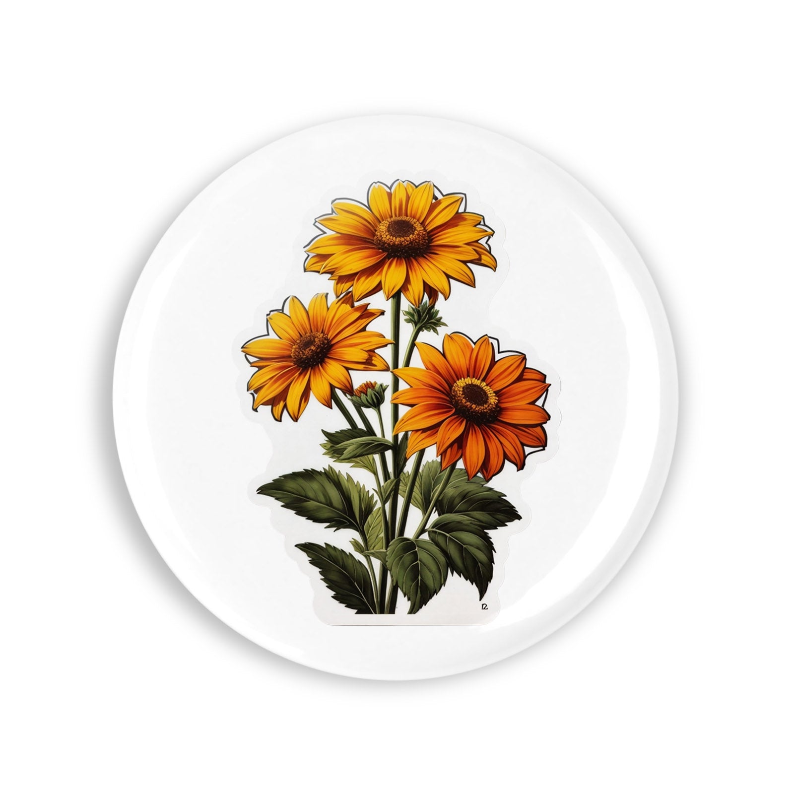 Set 4 insigne, Flori de Rudbeckia, NO8817, Metal, 44 mm, Multicolor