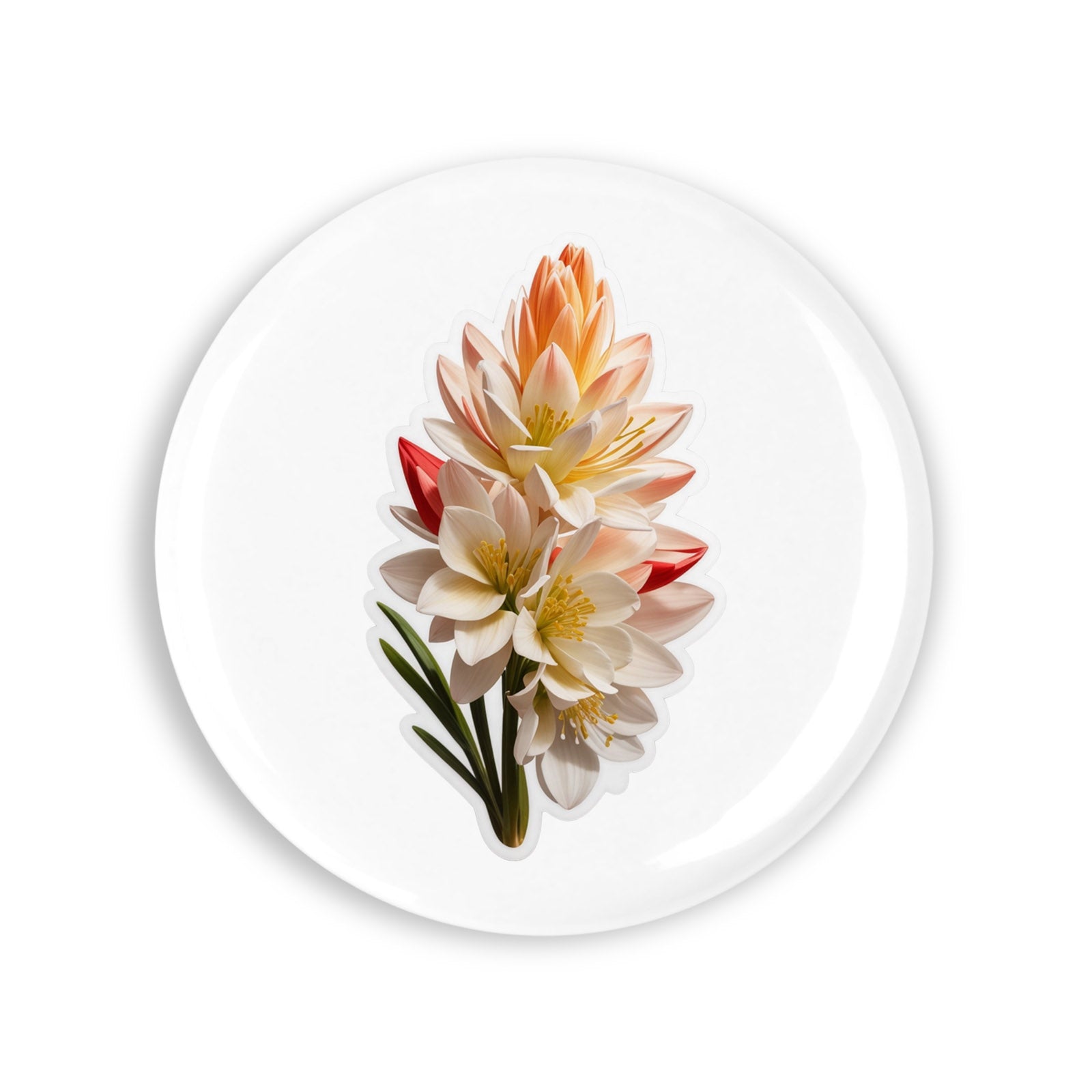 Set 4 insigne, Flori de tuberoze, NO8996, Metal, 44 mm, Multicolor