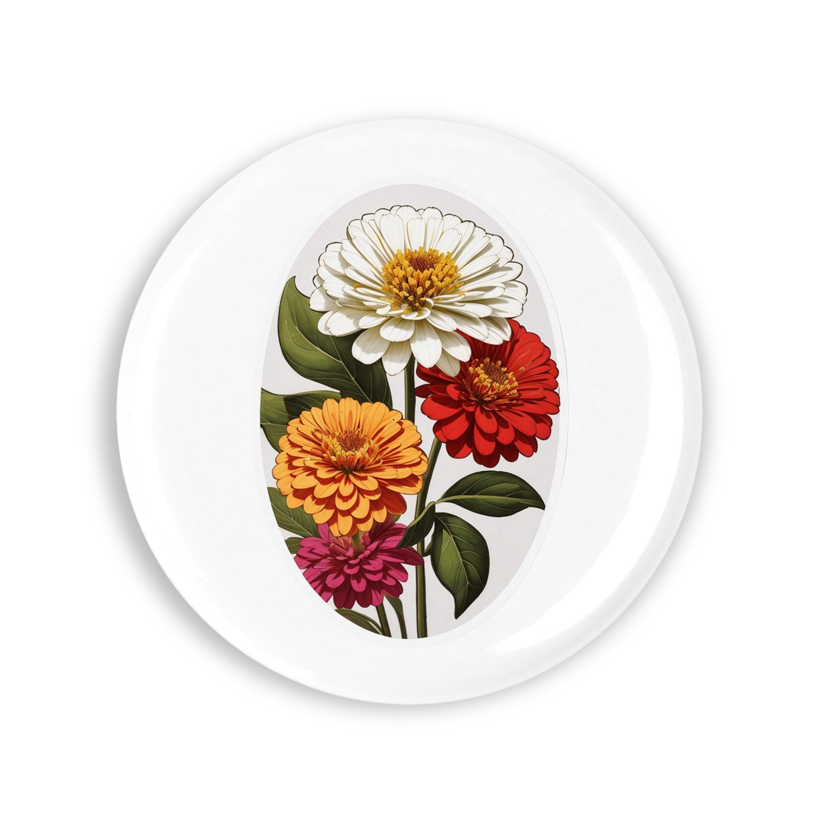 Set 4 insigne, Flori de zinnia, NO9102, Metal, 44 mm, Multicolor