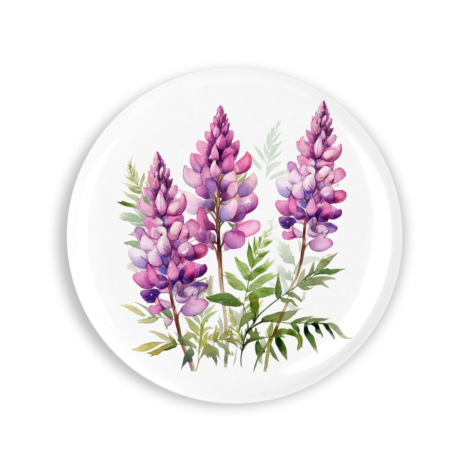 Set 4 insigne, Flori Lupin roz, NO1042, Metal, 44 mm, Multicolor