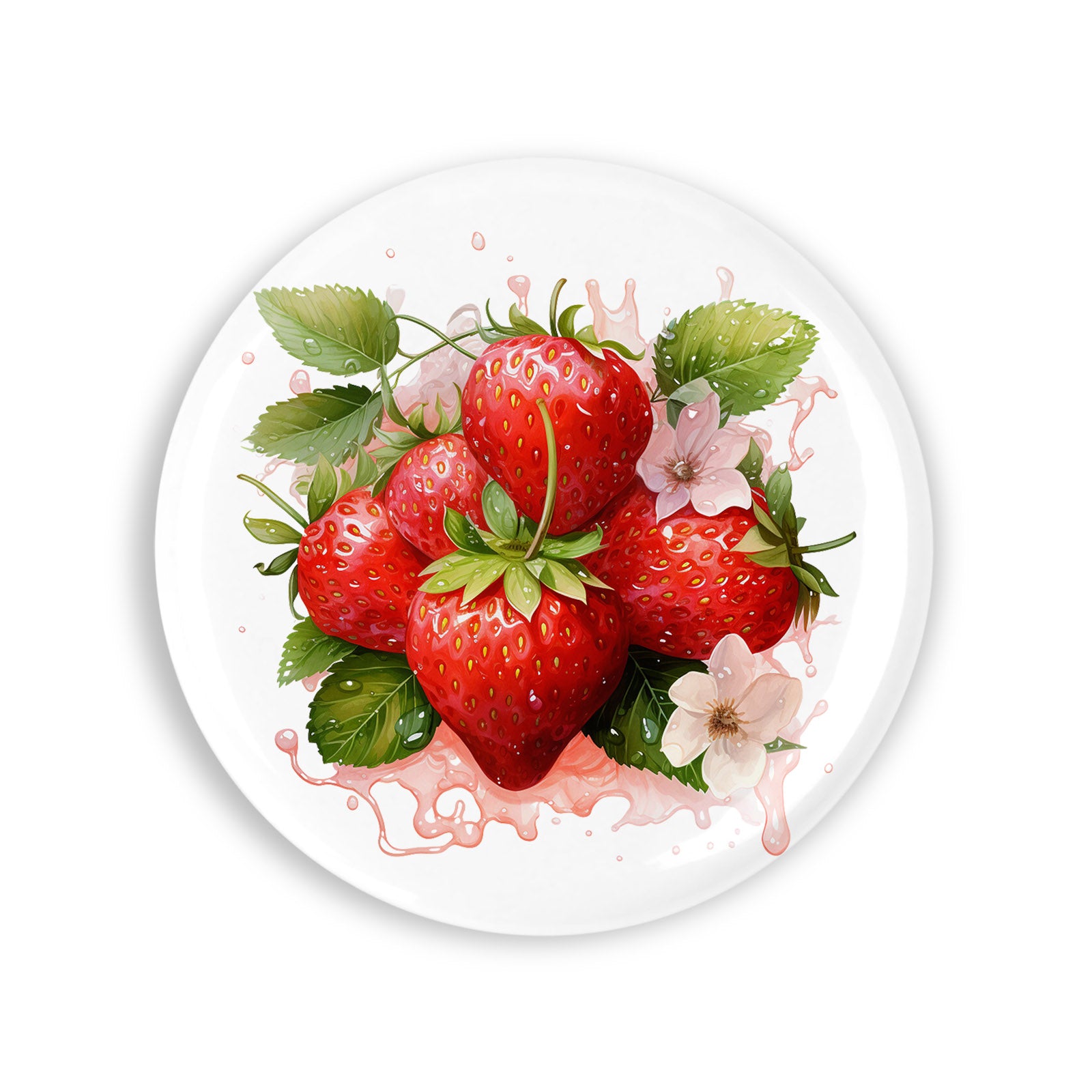Set 4 insigne, Flori si fructe de capsune, NO761, Metal, 44 mm, Multicolor