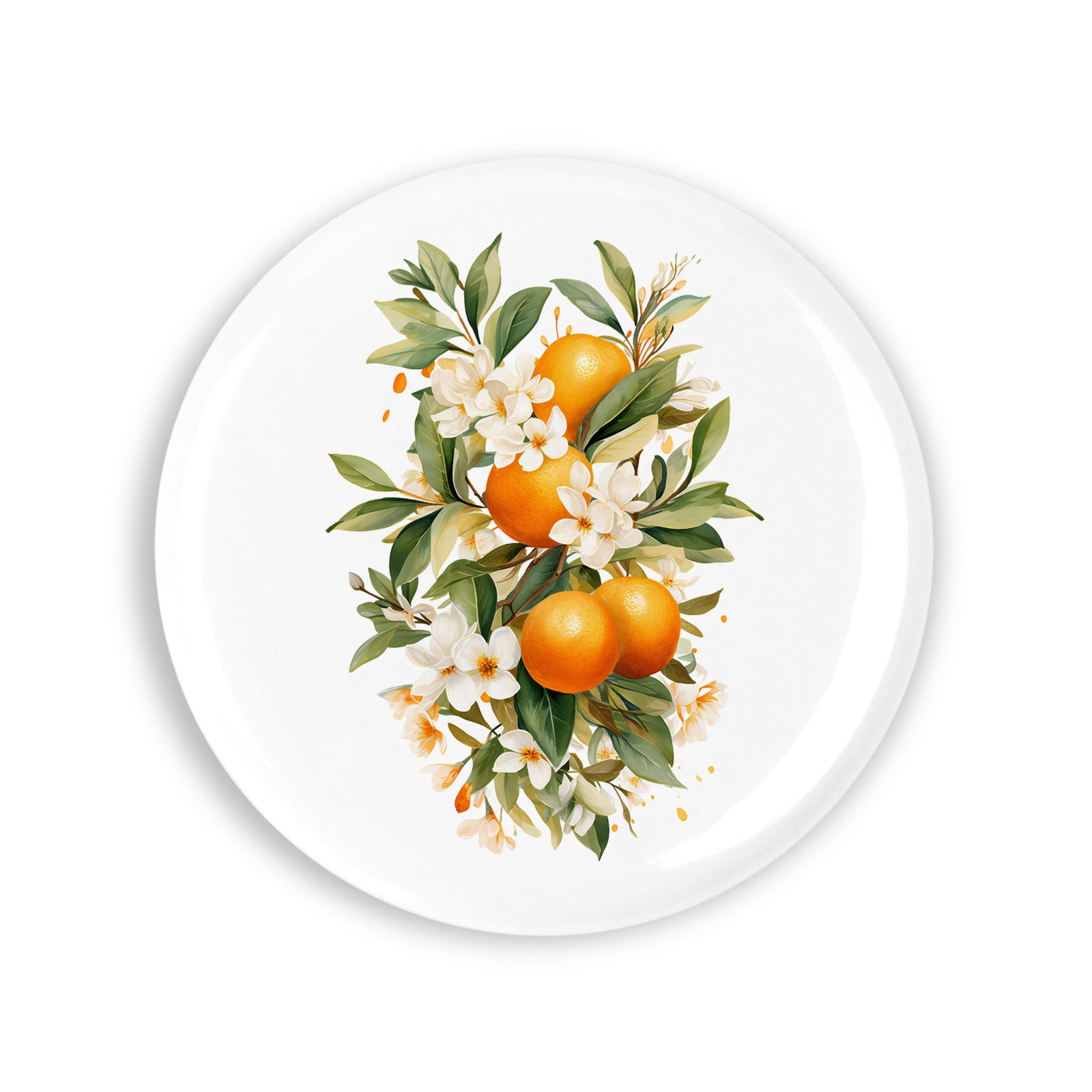 Set 4 insigne, Flori si fructe de portocali, NO2552, Metal, 44 mm, Multicolor