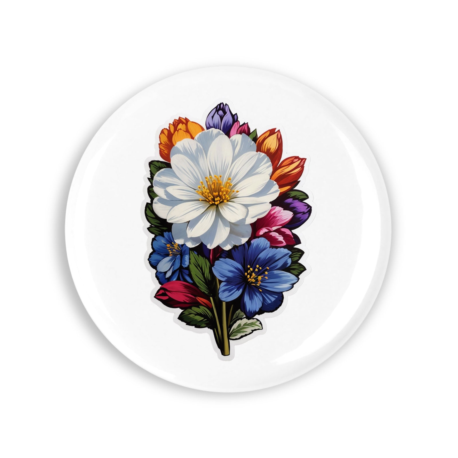 Set 4 insigne, Flori Veronica buchet, NO9019, Metal, 44 mm, Multicolor