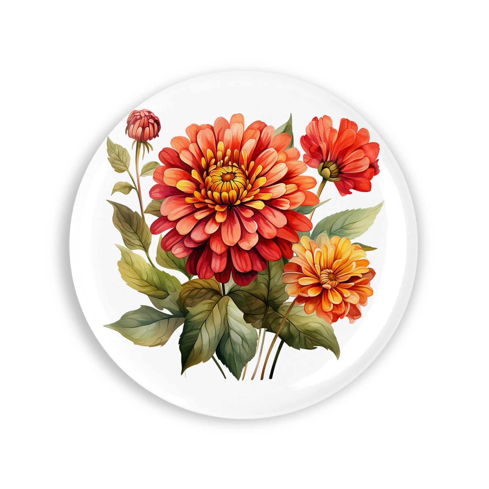 Set 4 insigne, Flori zinnia cu boboci, NO6382, Metal, 44 mm, Multicolor