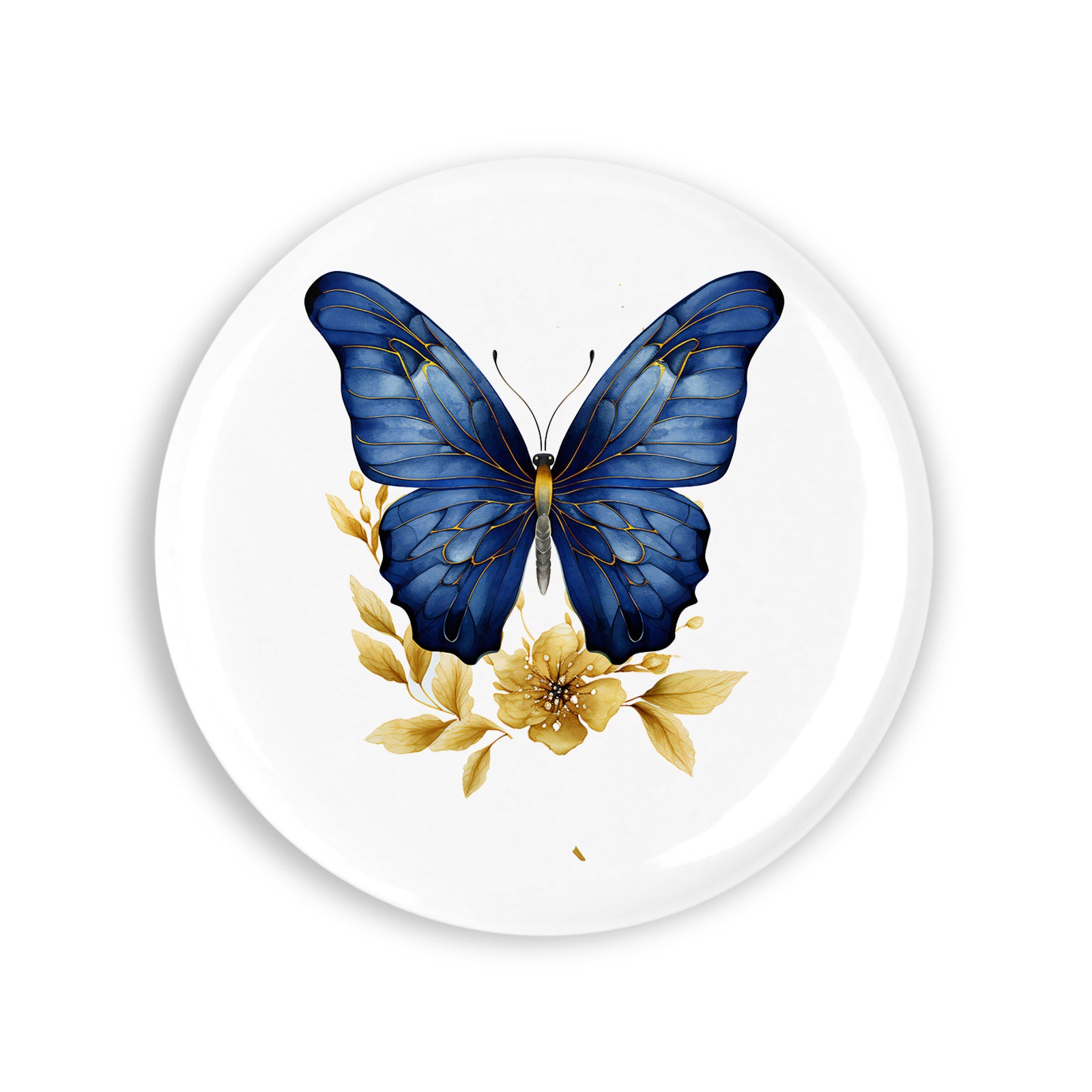 Set 4 insigne, Fluture albastru cu flori aurii, NO1386, Metal, 44 mm, Multicolor