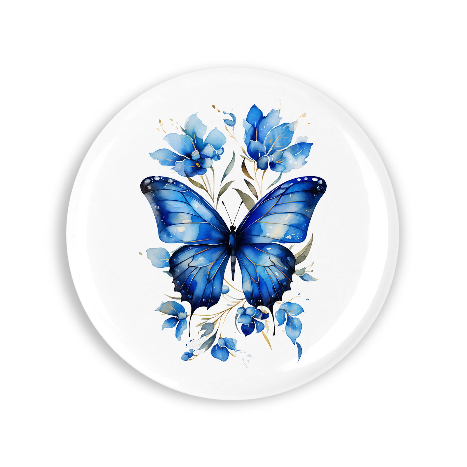 Set 4 insigne, Fluture si flori albastre, NO1985, Metal, 44 mm, Multicolor