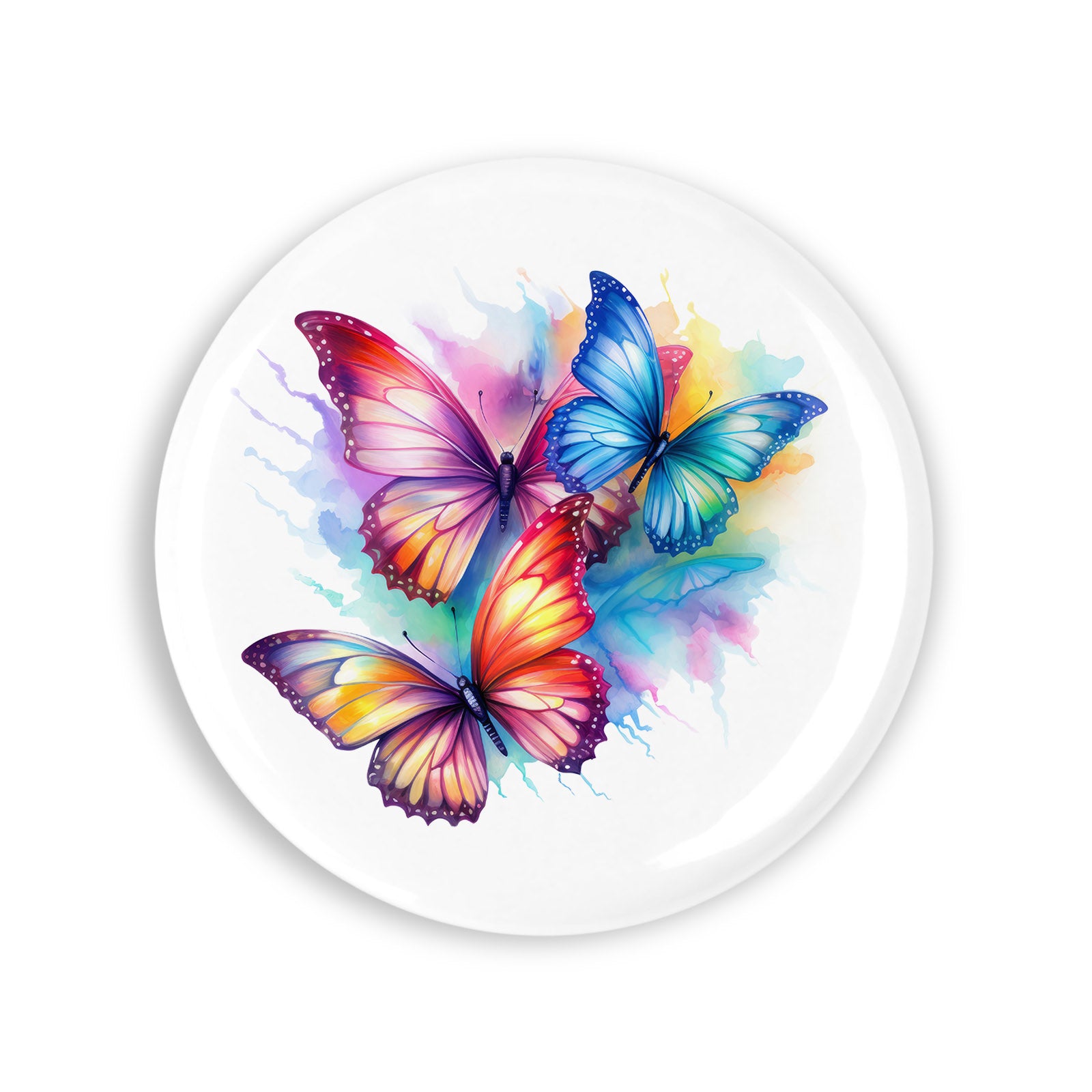 Set 4 insigne, Fluturi curcubeu Tropical, NO658, Metal, 44 mm, Multicolor