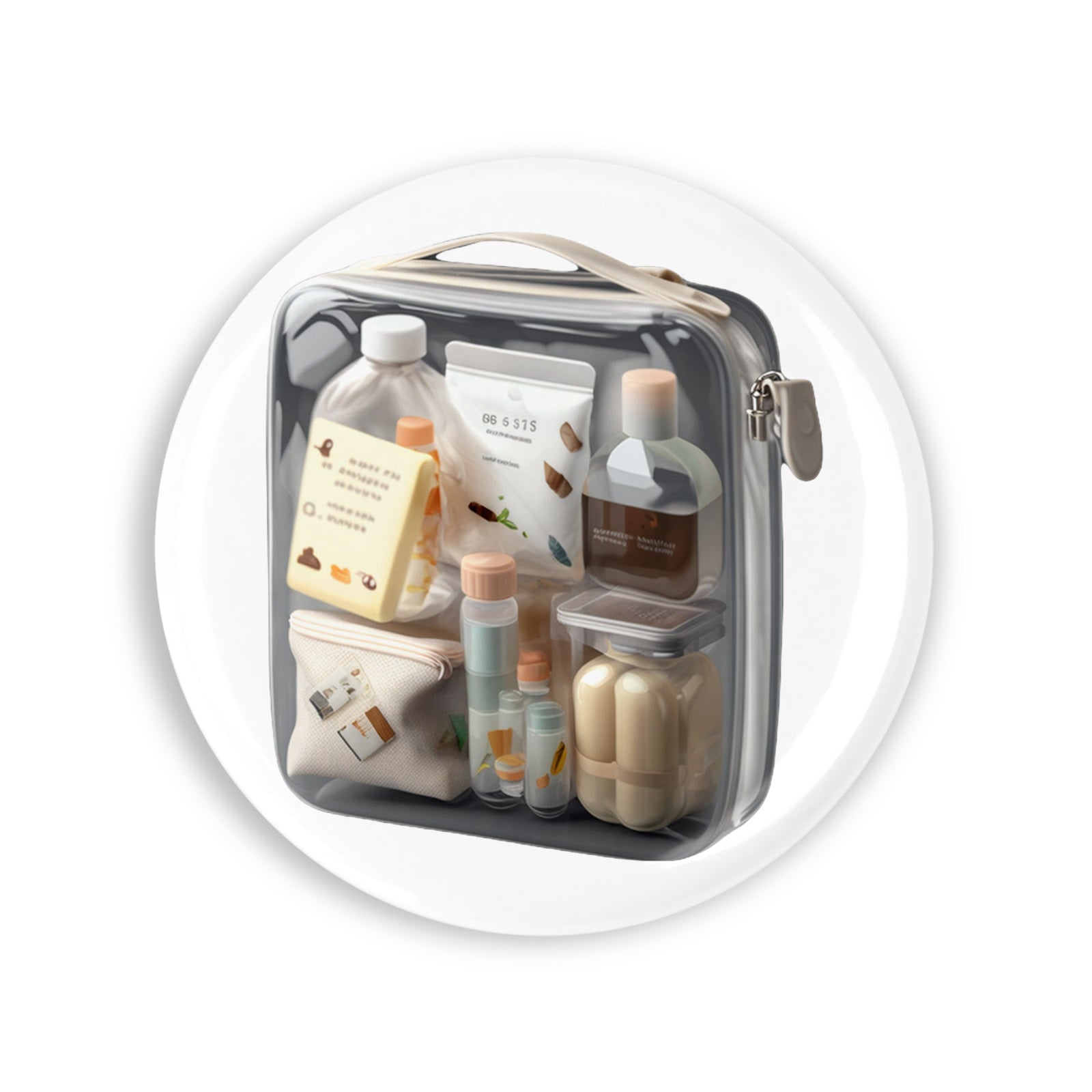 Set 4 insigne, Geanta cu cosmetice pentru calatorie, NO10237, Metal, 44 mm, Multicolor