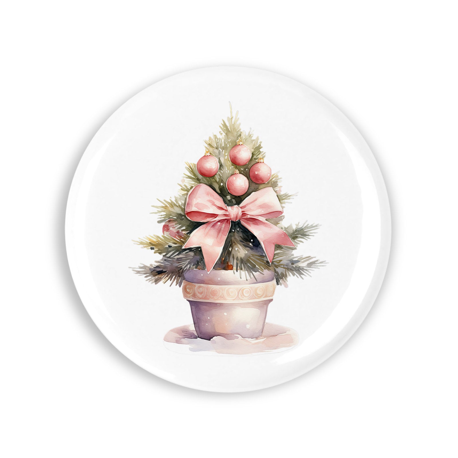 Set 4 insigne, Ghiveci cu brad de craciun, NO4422, Metal, 44 mm, Multicolor