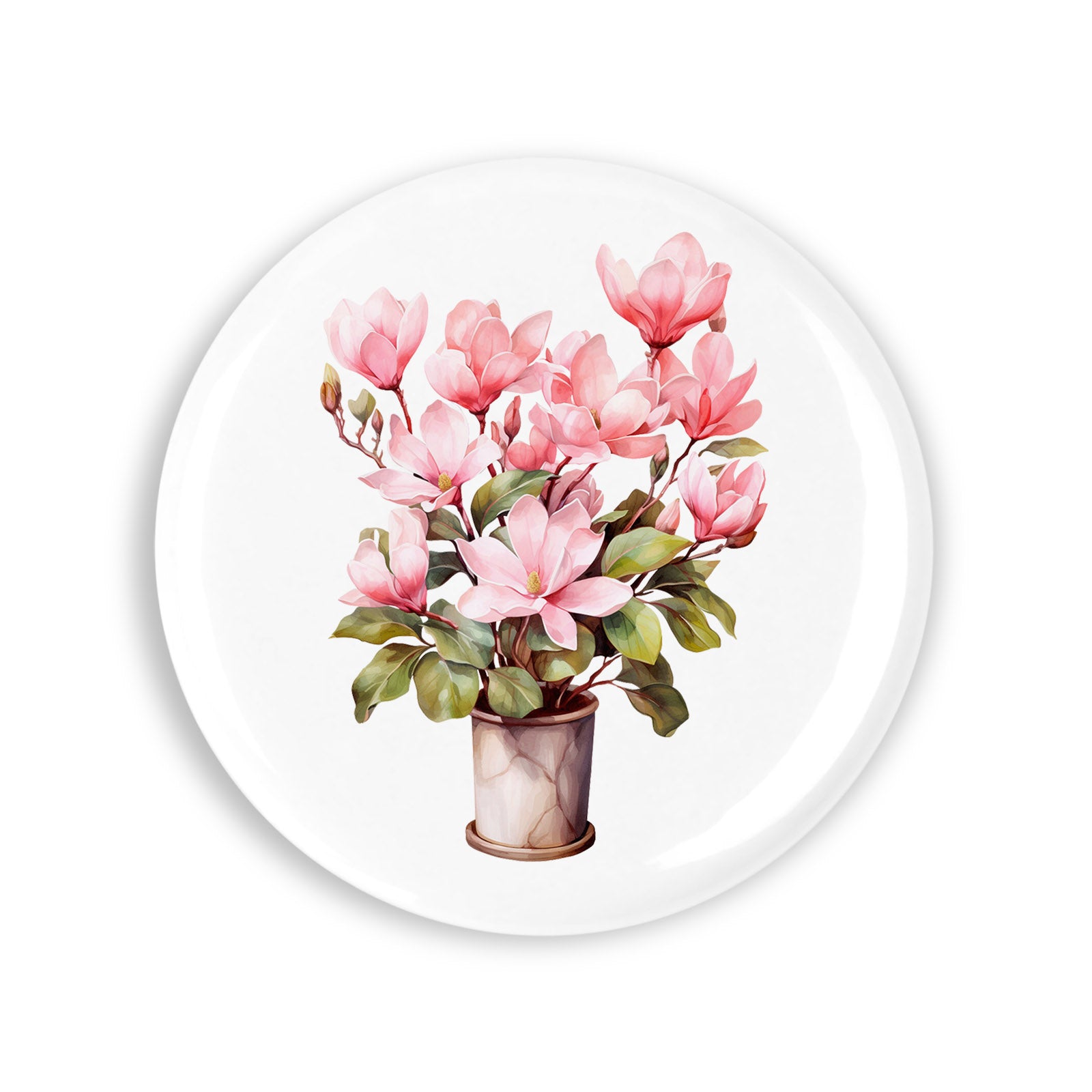 Set 4 insigne, Ghiveci cu magnolii, NO1943, Metal, 44 mm, Multicolor