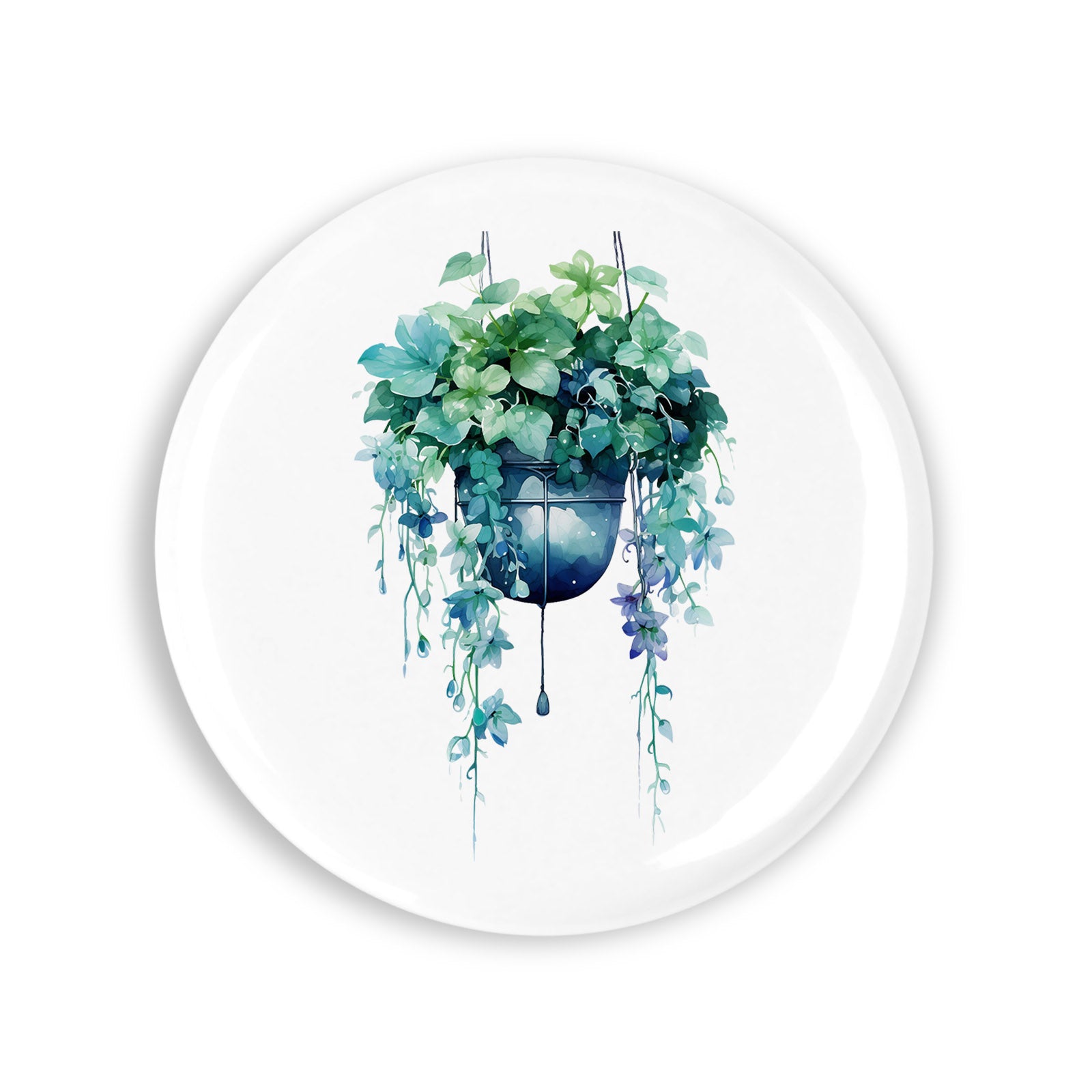 Set 4 insigne, Ghiveci suspendat cu flori albastre, NO1339, Metal, 44 mm, Multicolor