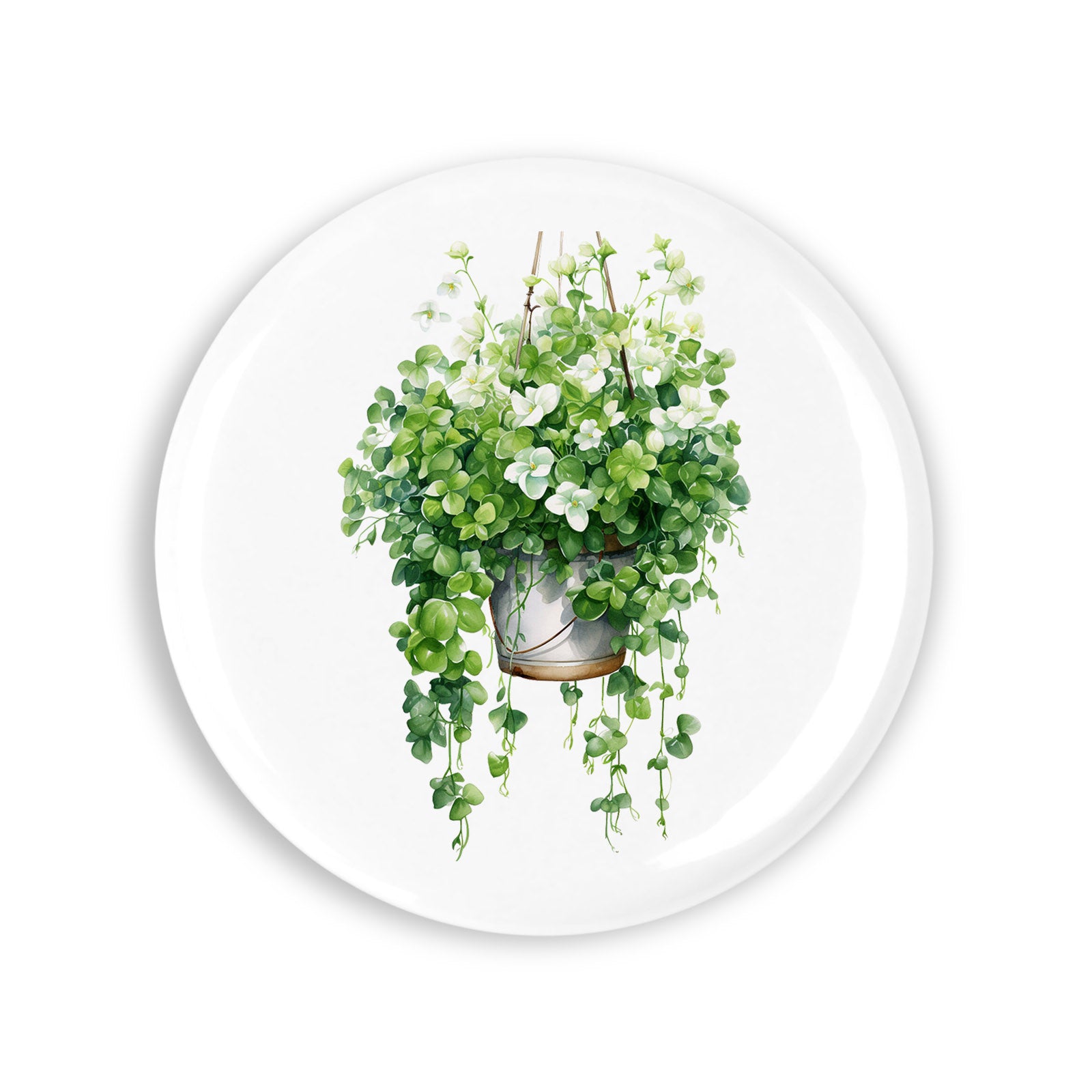 Set 4 insigne, Ghiveci suspendat cu flori albe, NO015, Metal, 44 mm, Multicolor