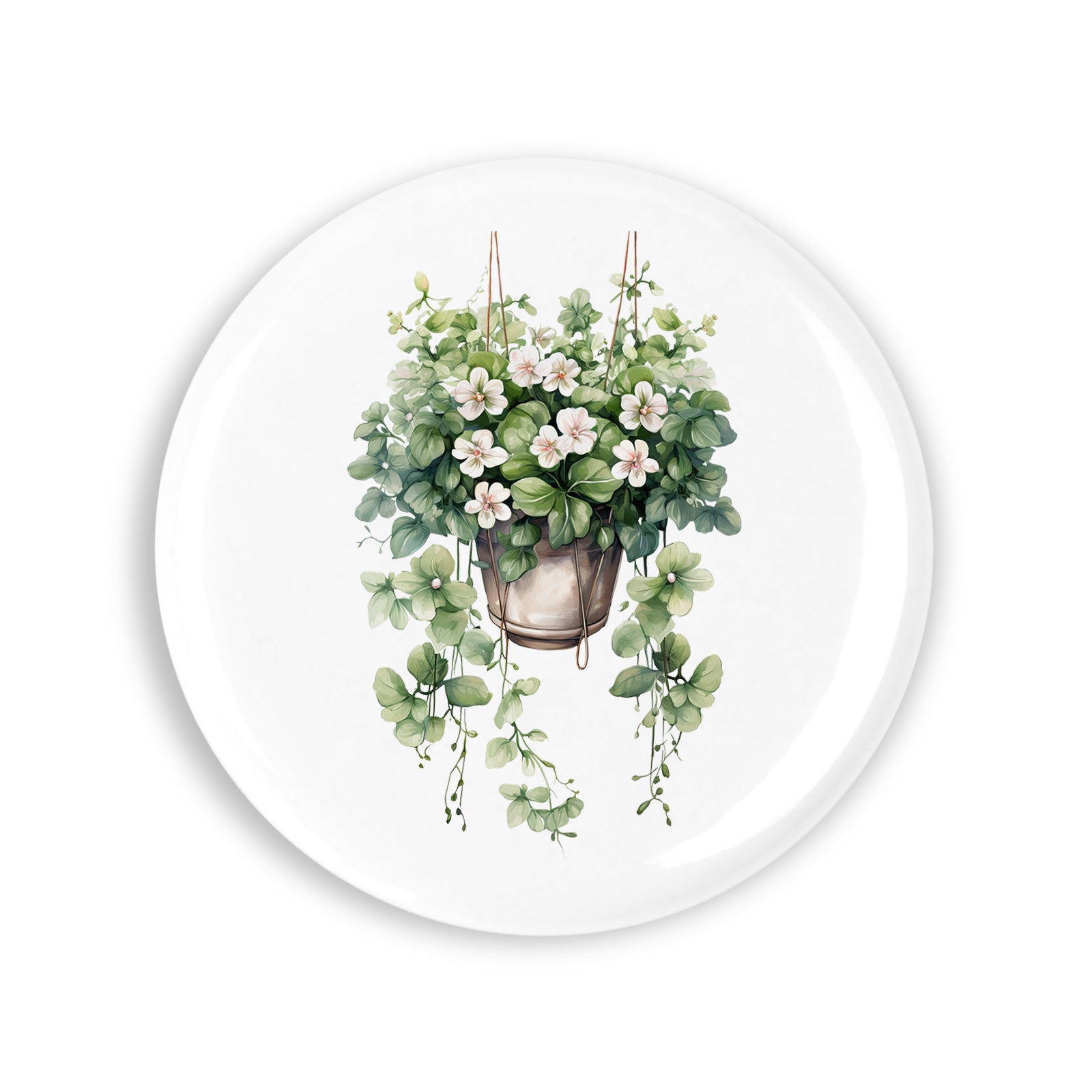 Set 4 insigne, Ghiveci suspendat cu orhidee albe, NO119, Metal, 44 mm, Multicolor