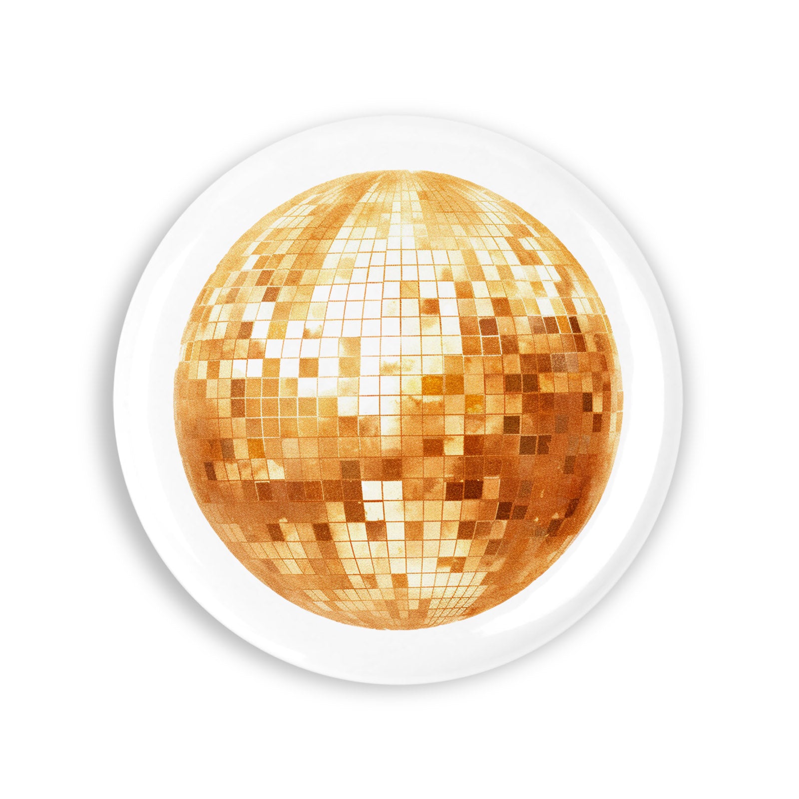 Set 4 insigne, Glob din bucati de oglinda auriu, NO6390, Metal, 44 mm, Multicolor