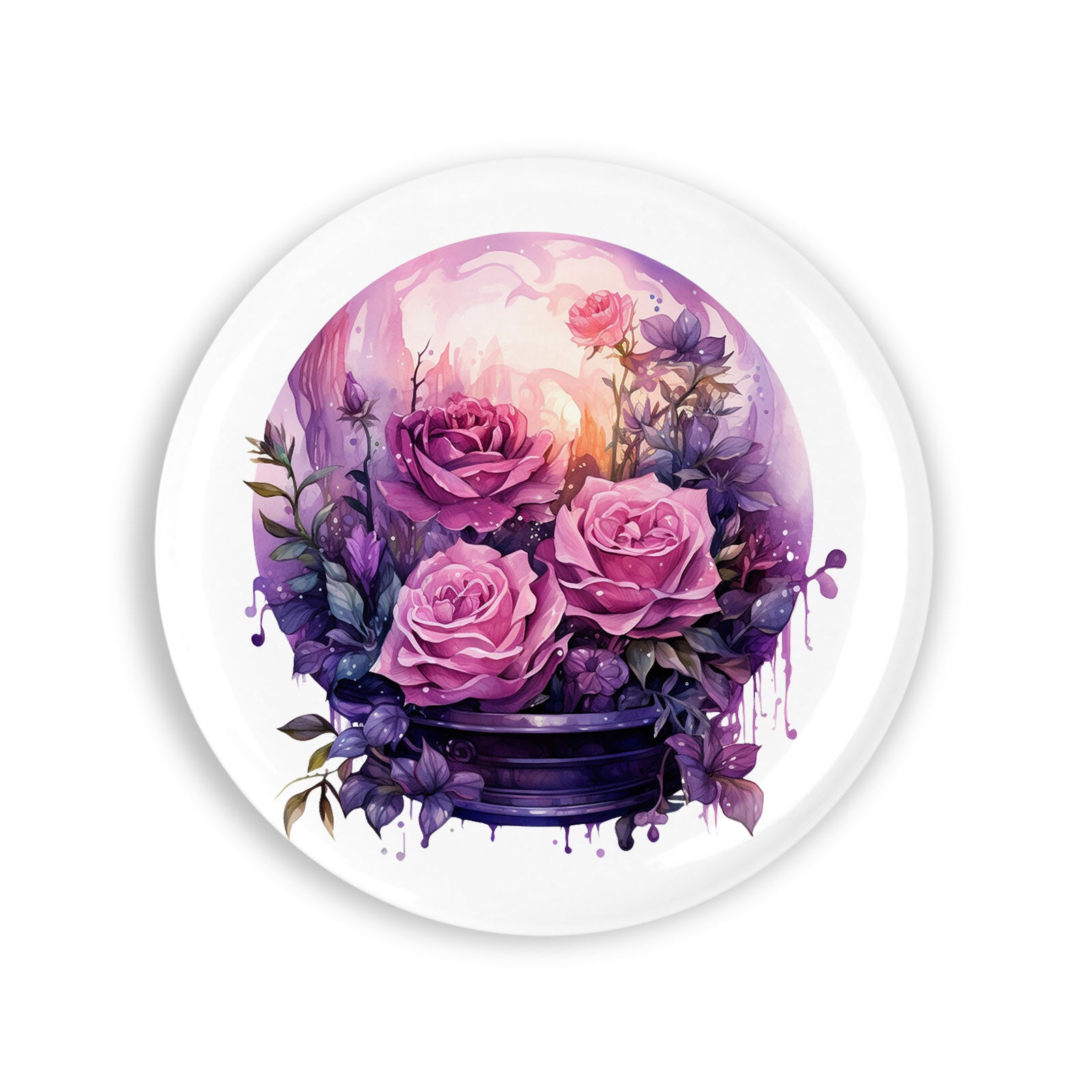 Set 4 insigne, Globul de cristal Apusul cu flori, NO6321, Metal, 44 mm, Multicolor
