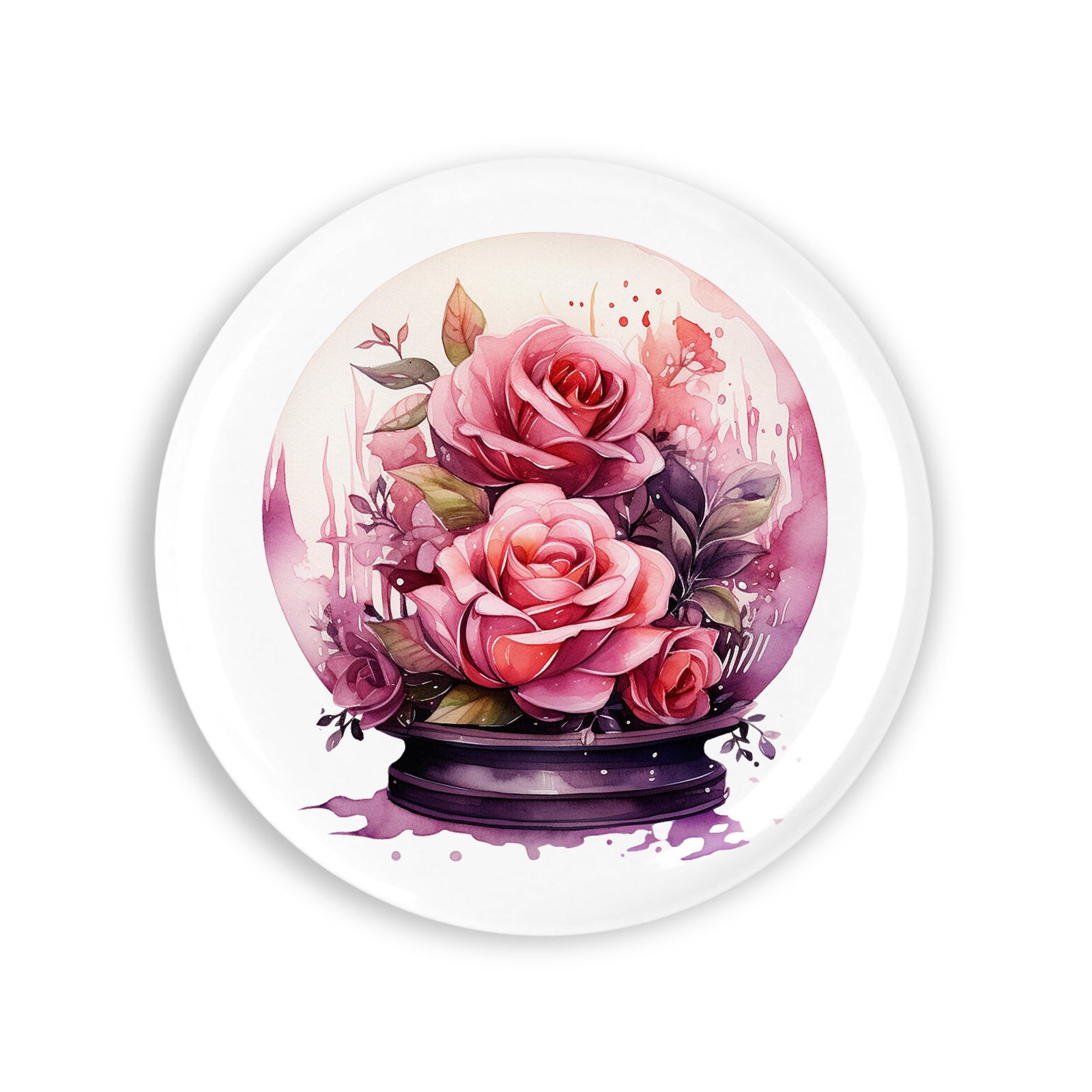 Set 4 insigne, Globul de cristal cu trandafiri rosii, NO2433, Metal, 44 mm, Multicolor