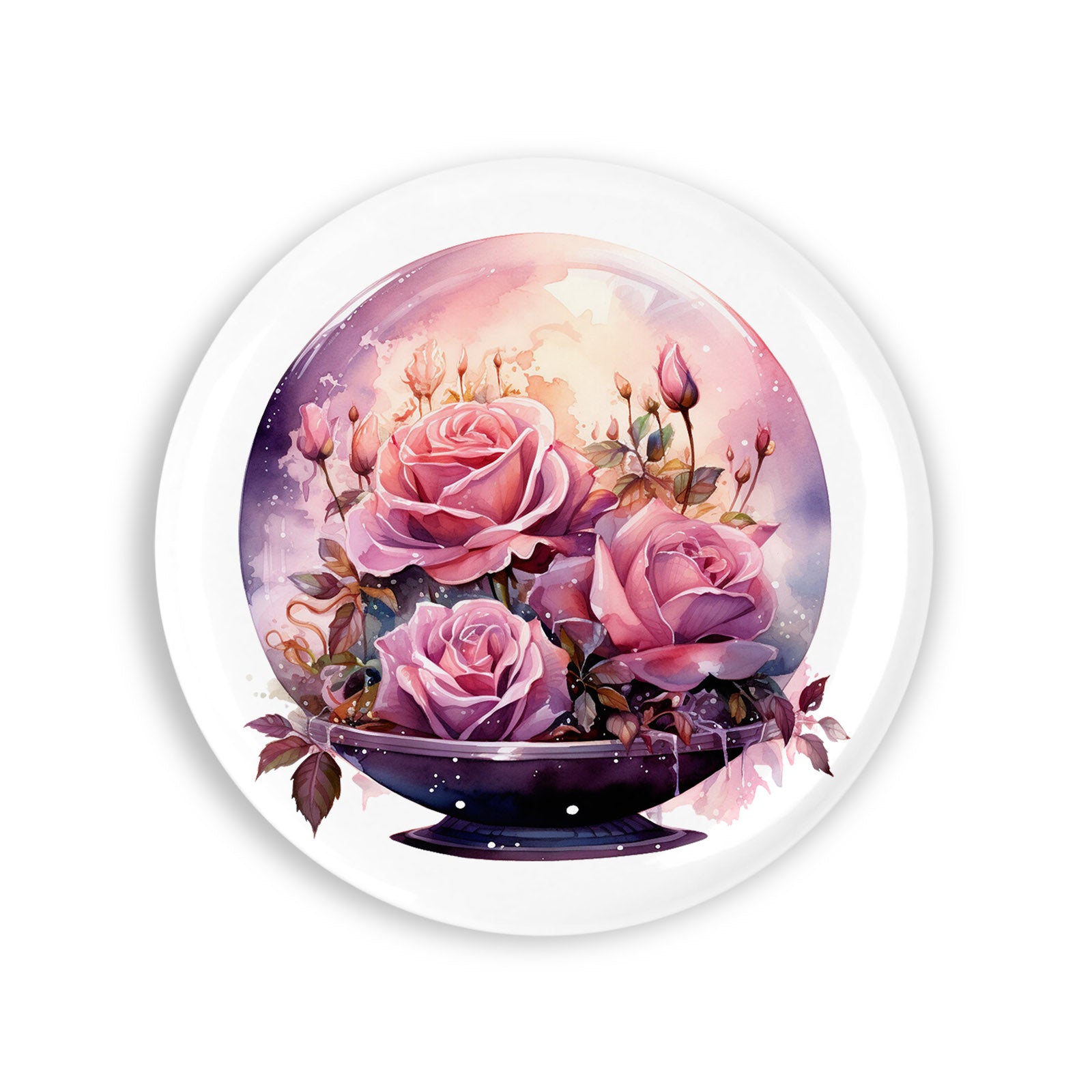 Set 4 insigne, Globul de cristal cu trandafiri roz, NO2844, Metal, 44 mm, Multicolor