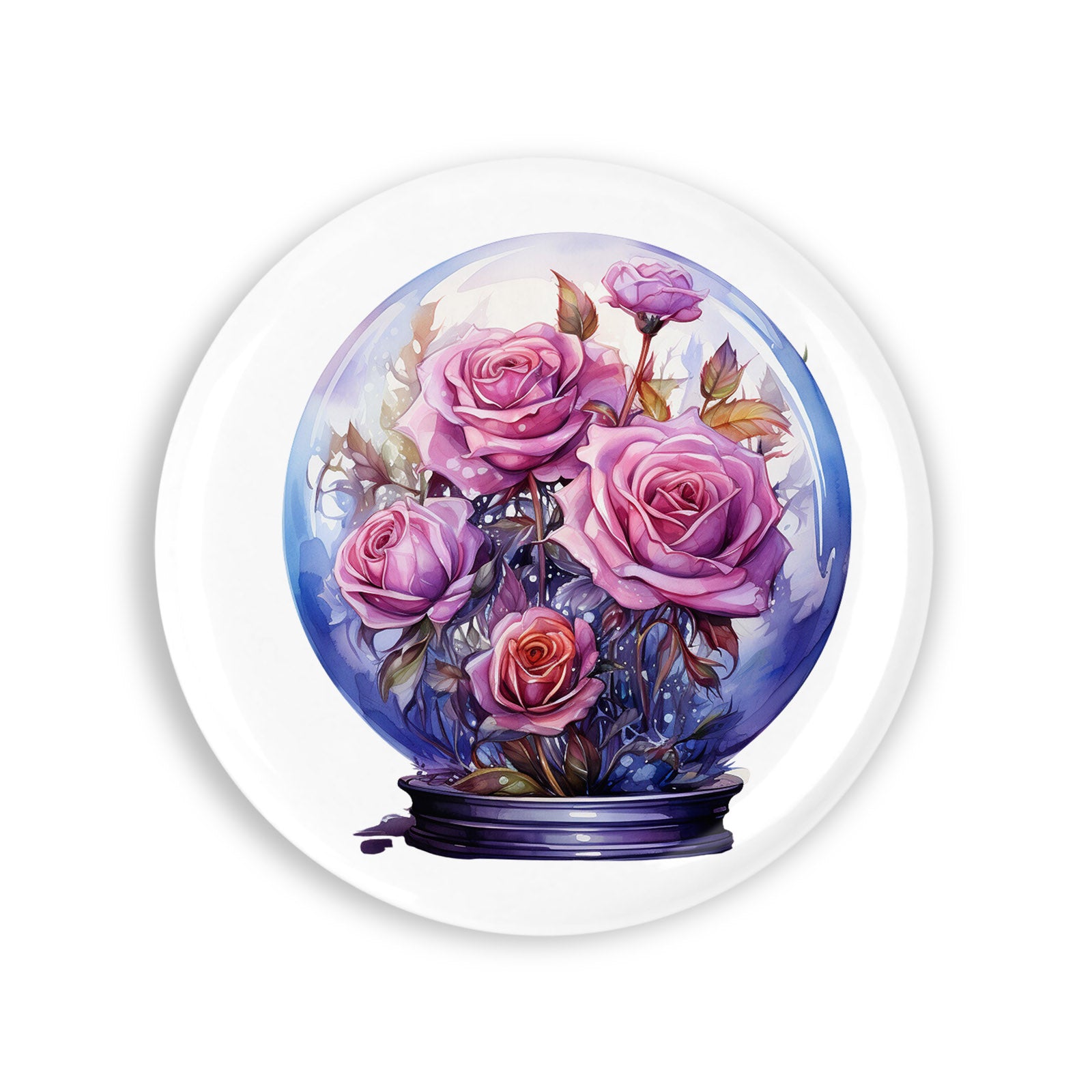 Set 4 insigne, Globul de cristal Trandafiri in noapte, NO5329, Metal, 44 mm, Multicolor