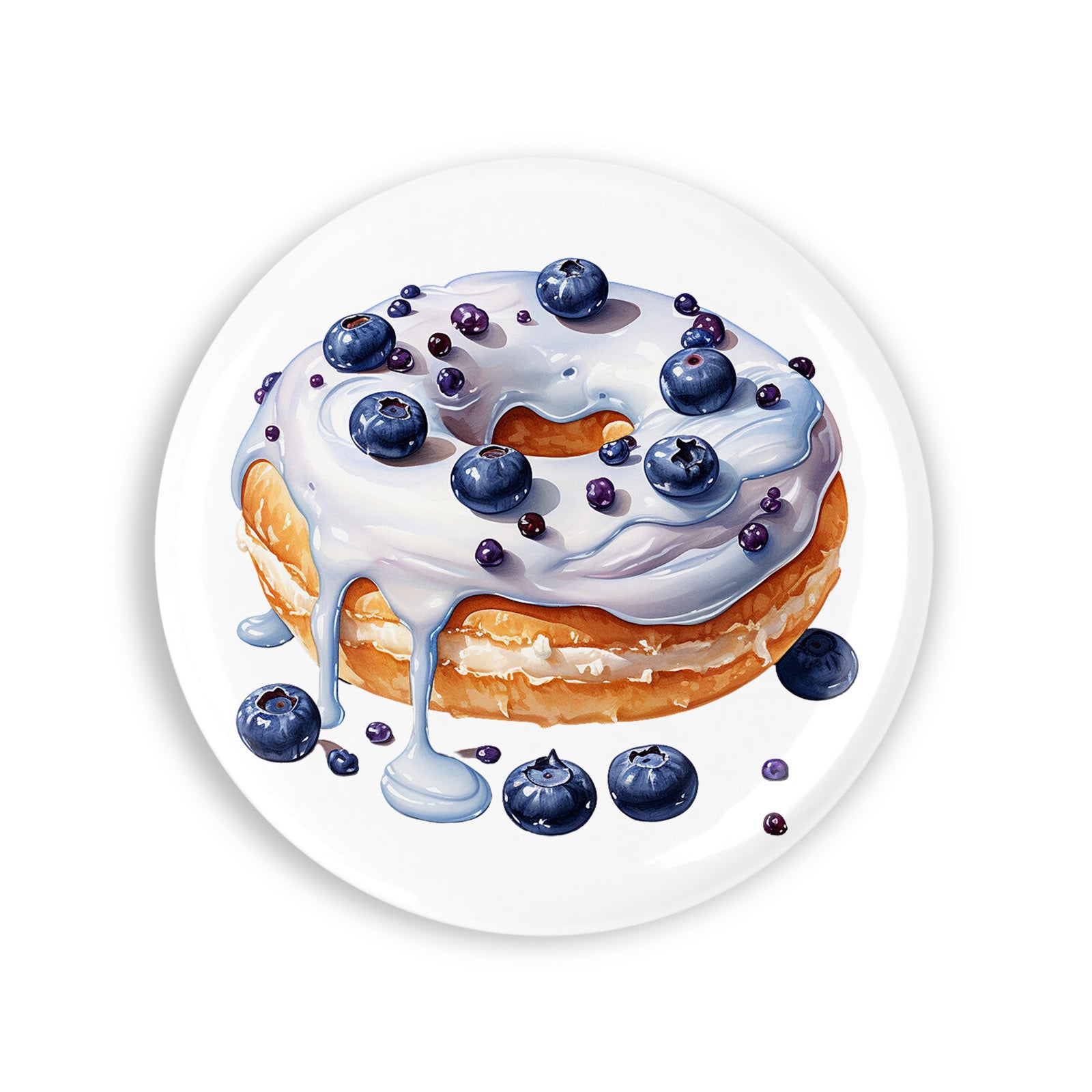 Set 4 insigne, Gogoasa cu ciocolata alba si afine, NO6427, Metal, 44 mm, Multicolor