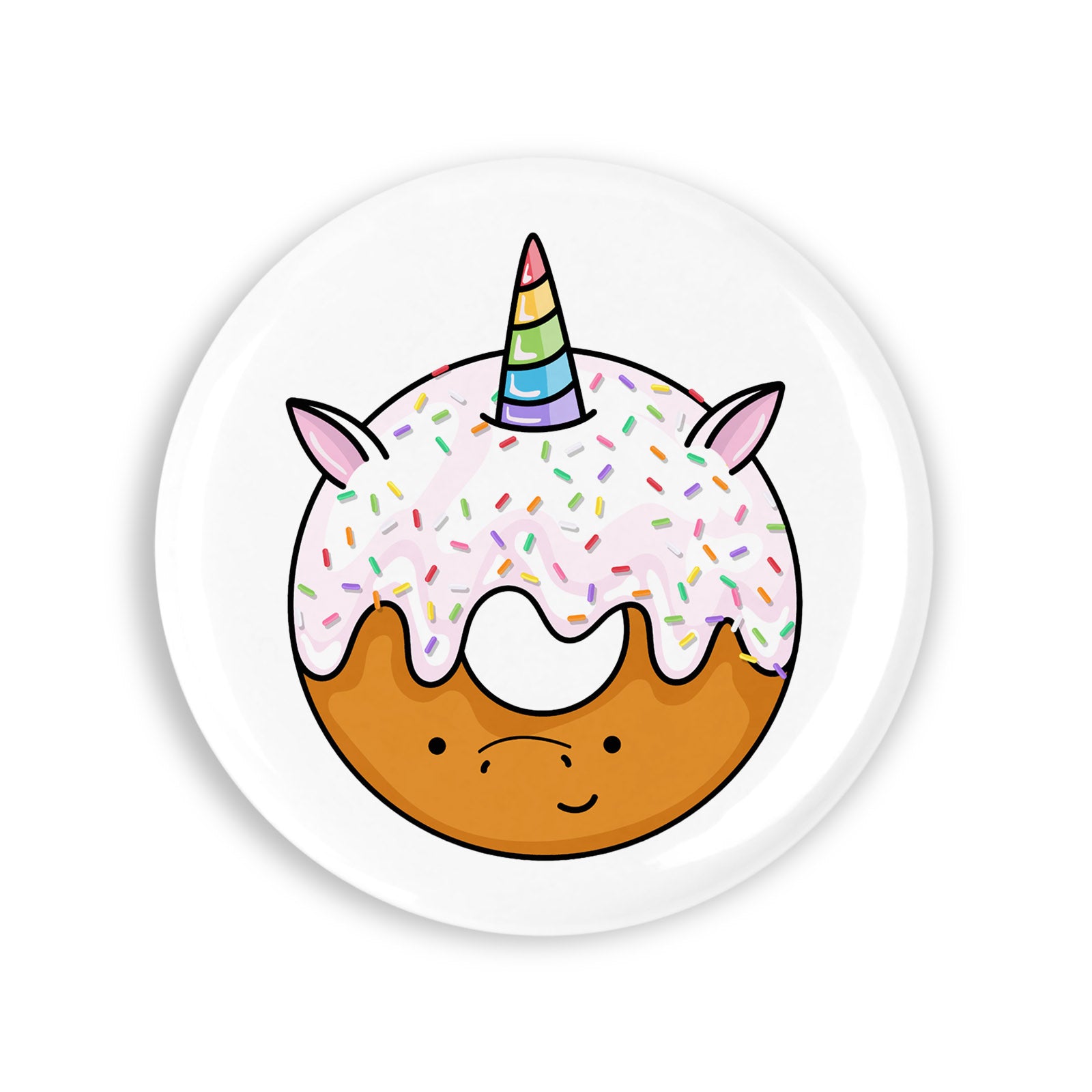 Set 4 insigne, Gogoasa Donut Unicorn cu vanilie, NO10301, Metal, 44 mm, Multicolor