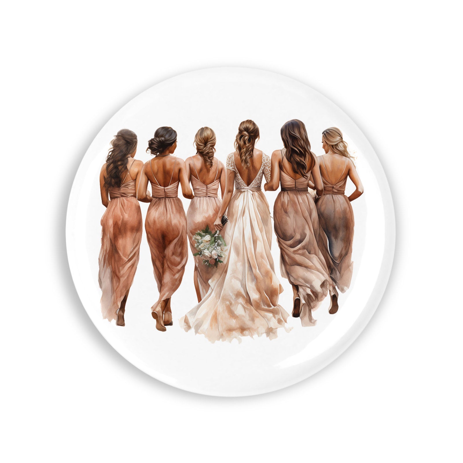 Set 4 insigne, Grup de domnisoare de onoare cu mireasa, NO3477, Metal, 44 mm, Multicolor