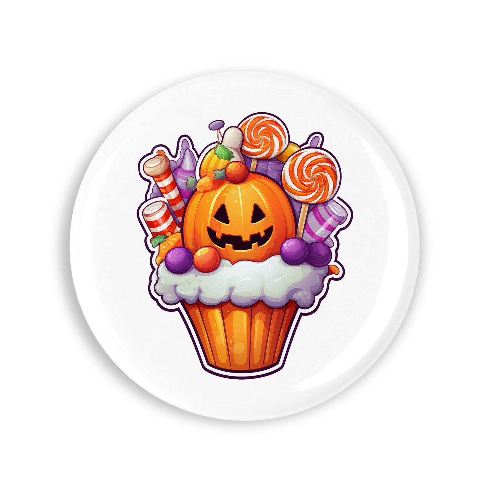 Set 4 insigne, Halloween Briosa cu acadele, NO712, Metal, 44 mm, Multicolor