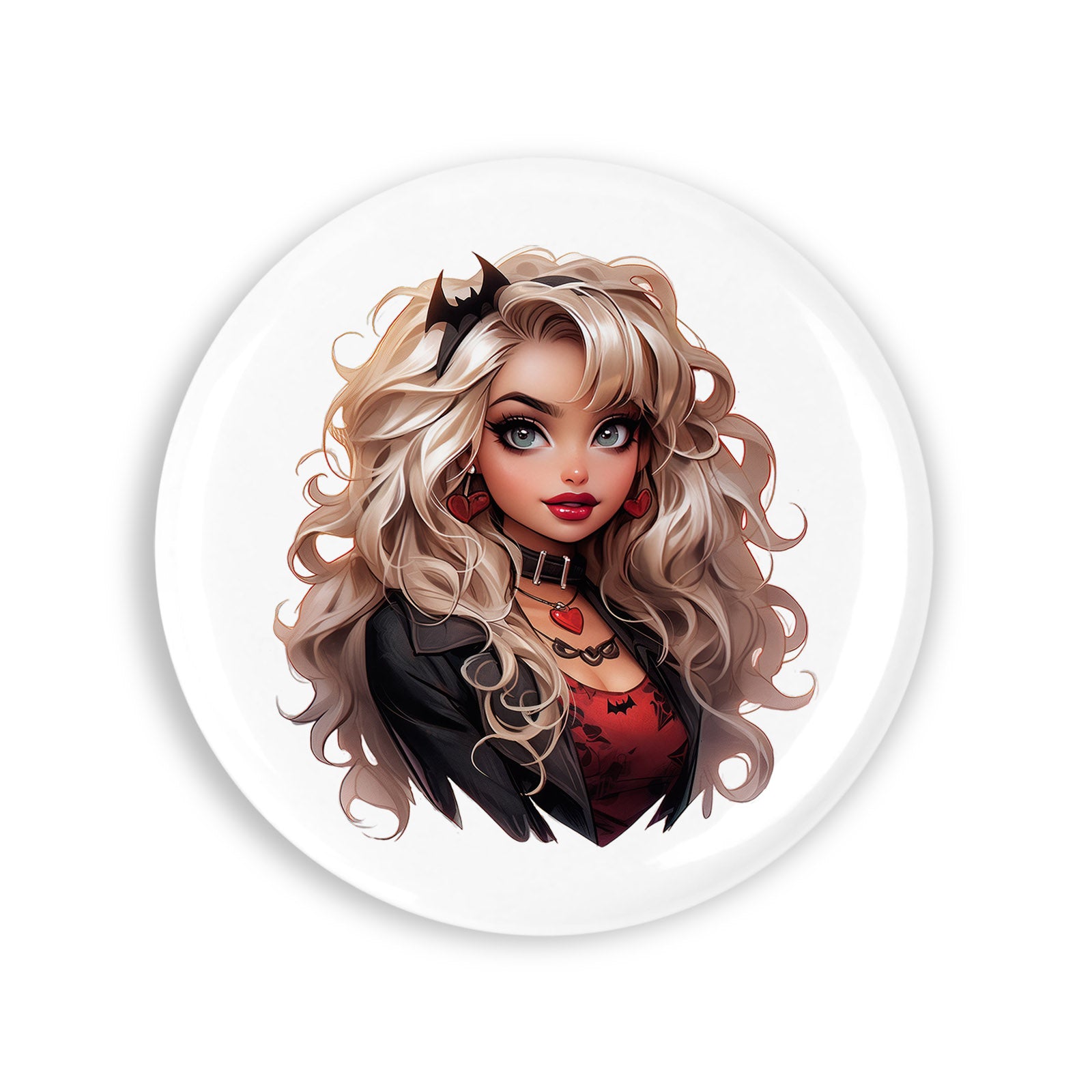 Set 4 insigne, Halloween Fata cu liliac in par, NO5723, Metal, 44 mm, Multicolor