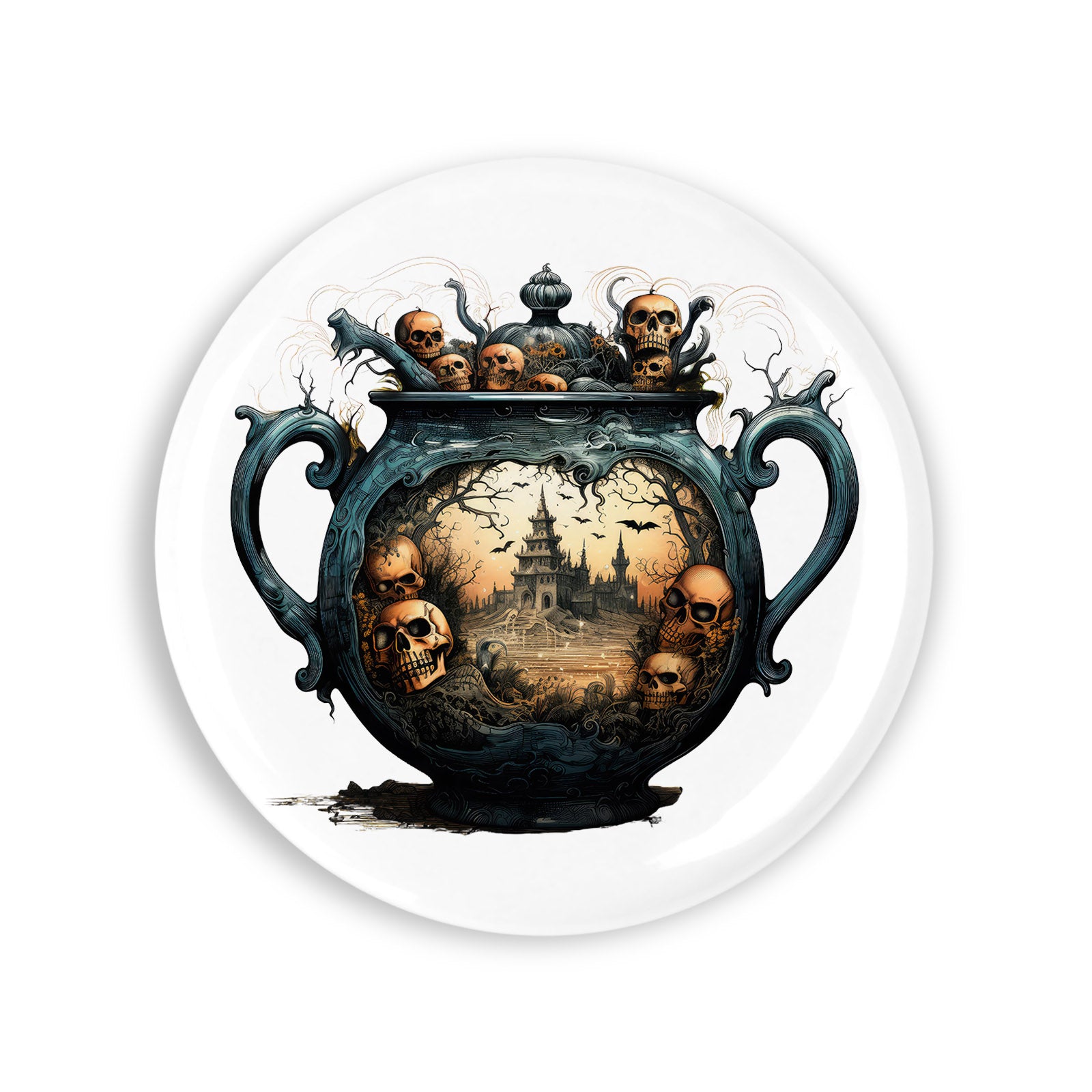 Set 4 insigne, Halloween oala cu cranii, NO4045, Metal, 44 mm, Multicolor