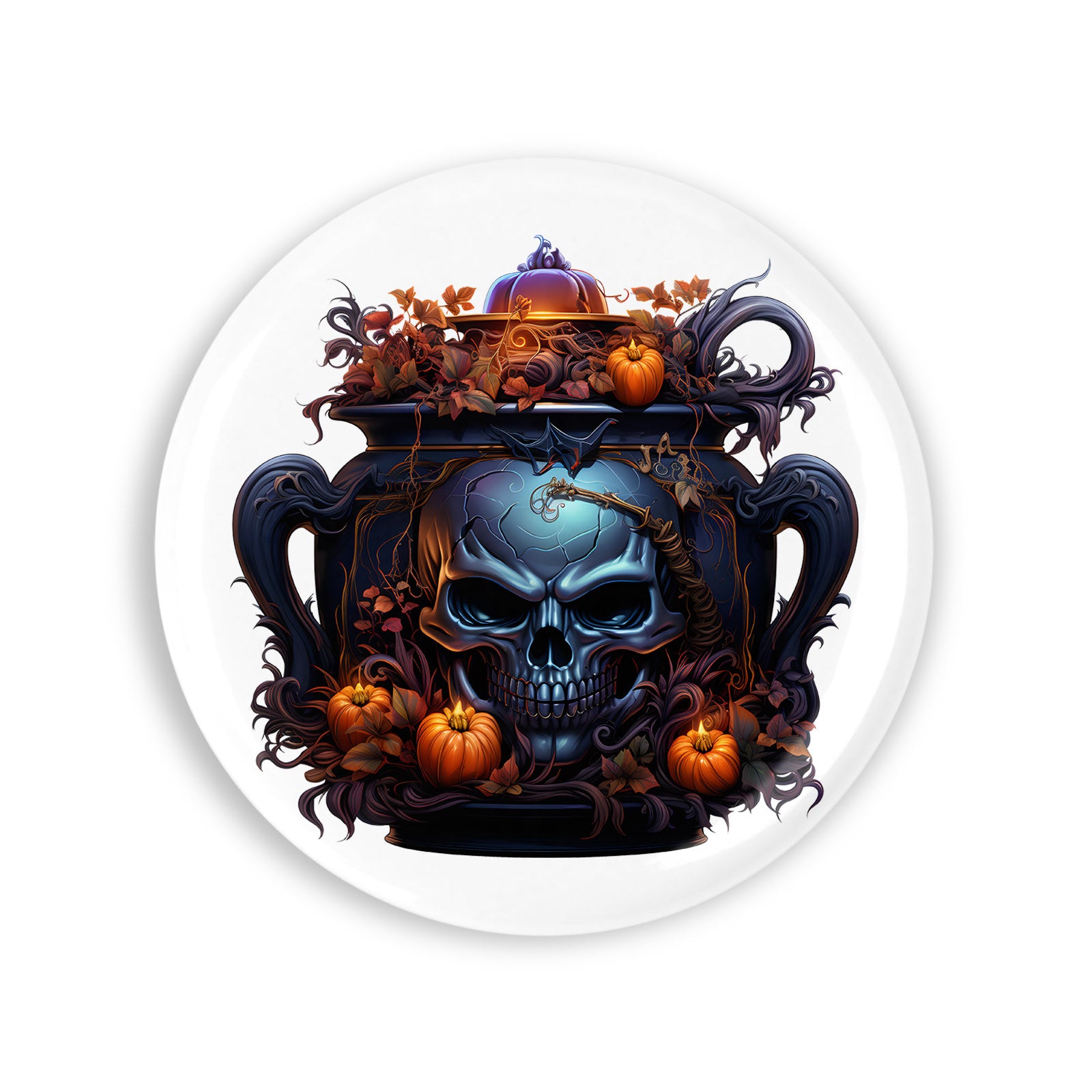 Set 4 insigne, Halloween Oala cu craniu, NO558, Metal, 44 mm, Multicolor