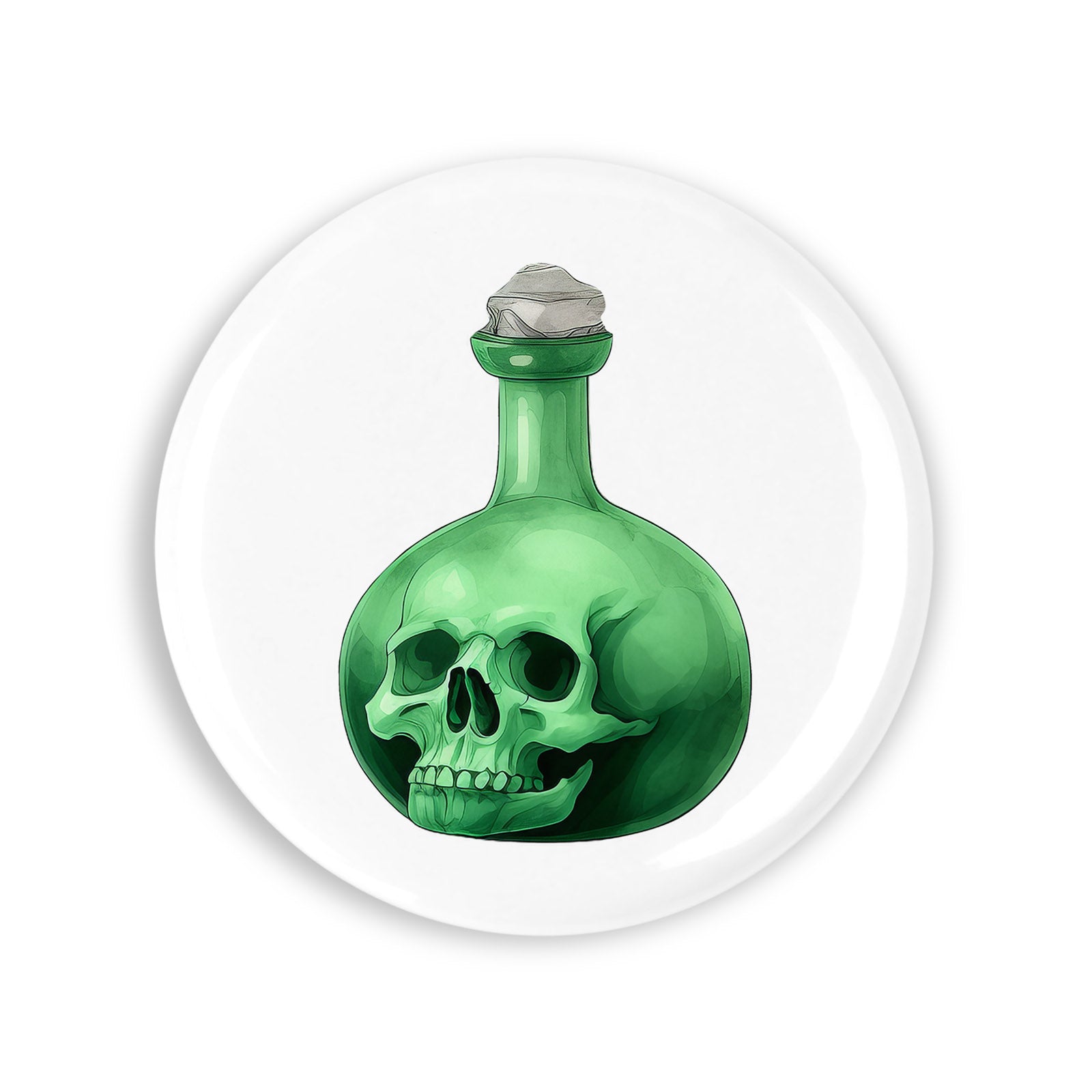 Set 4 insigne, Halloween Sticla verde cu craniu, NO337, Metal, 44 mm, Multicolor