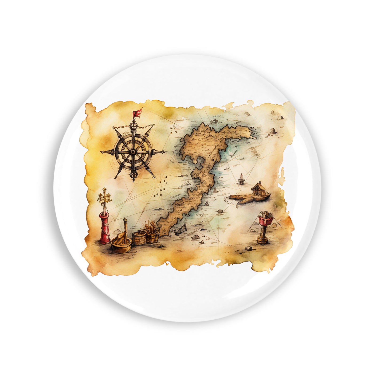 Set 4 insigne, Harta piratilor, NO4043, Metal, 44 mm, Multicolor