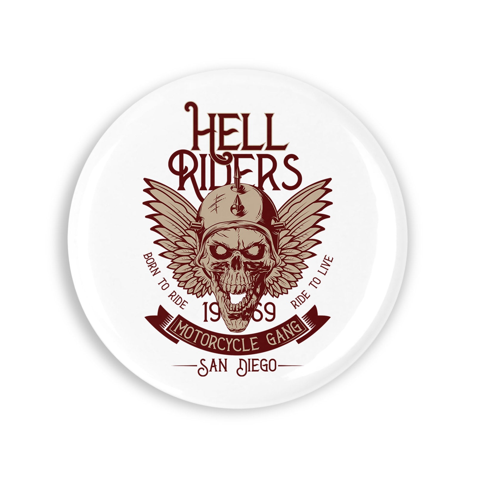 Set 4 insigne, Hell riders motorcycle garage San Diego, NO984, Metal, 44 mm, Multicolor