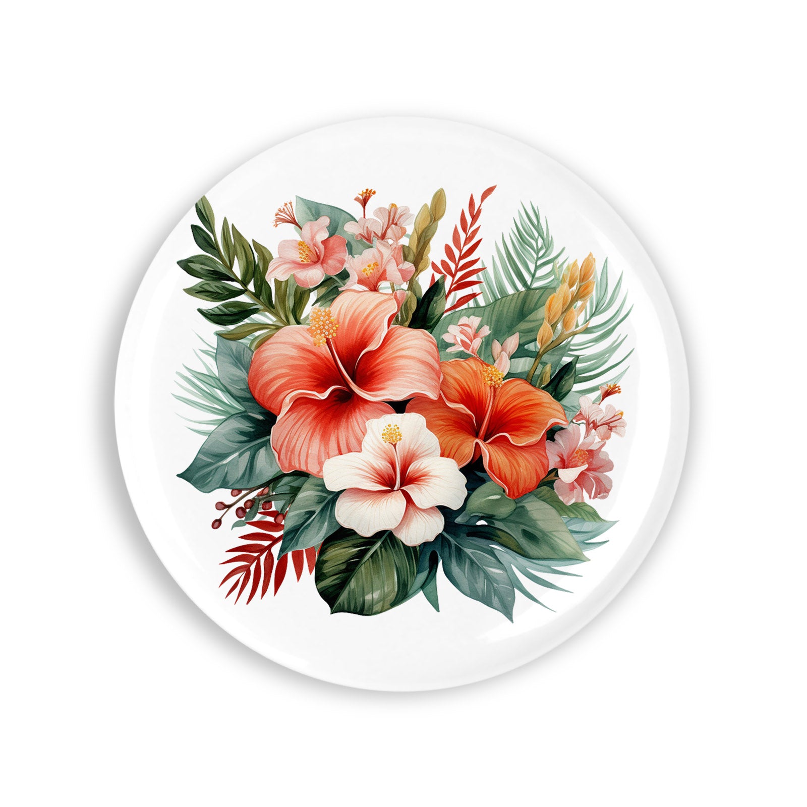 Set 4 insigne, Hibiscus alb roz si portocaliu, NO294, Metal, 44 mm, Multicolor