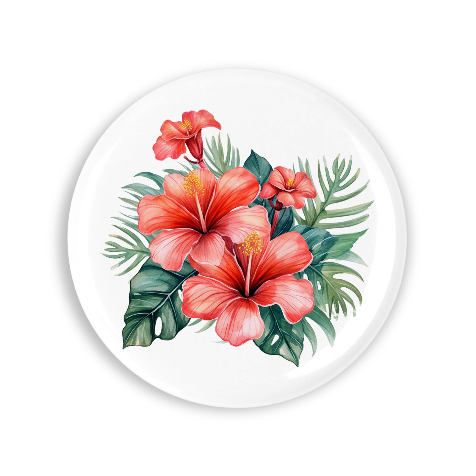 Set 4 insigne, Hibiscus rosu, NO5809, Metal, 44 mm, Multicolor