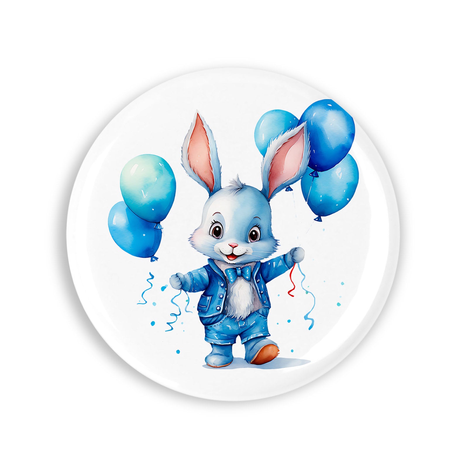 Set 4 insigne, Iepurasul albastru cu papion si baloane, NO4337, Metal, 44 mm, Multicolor