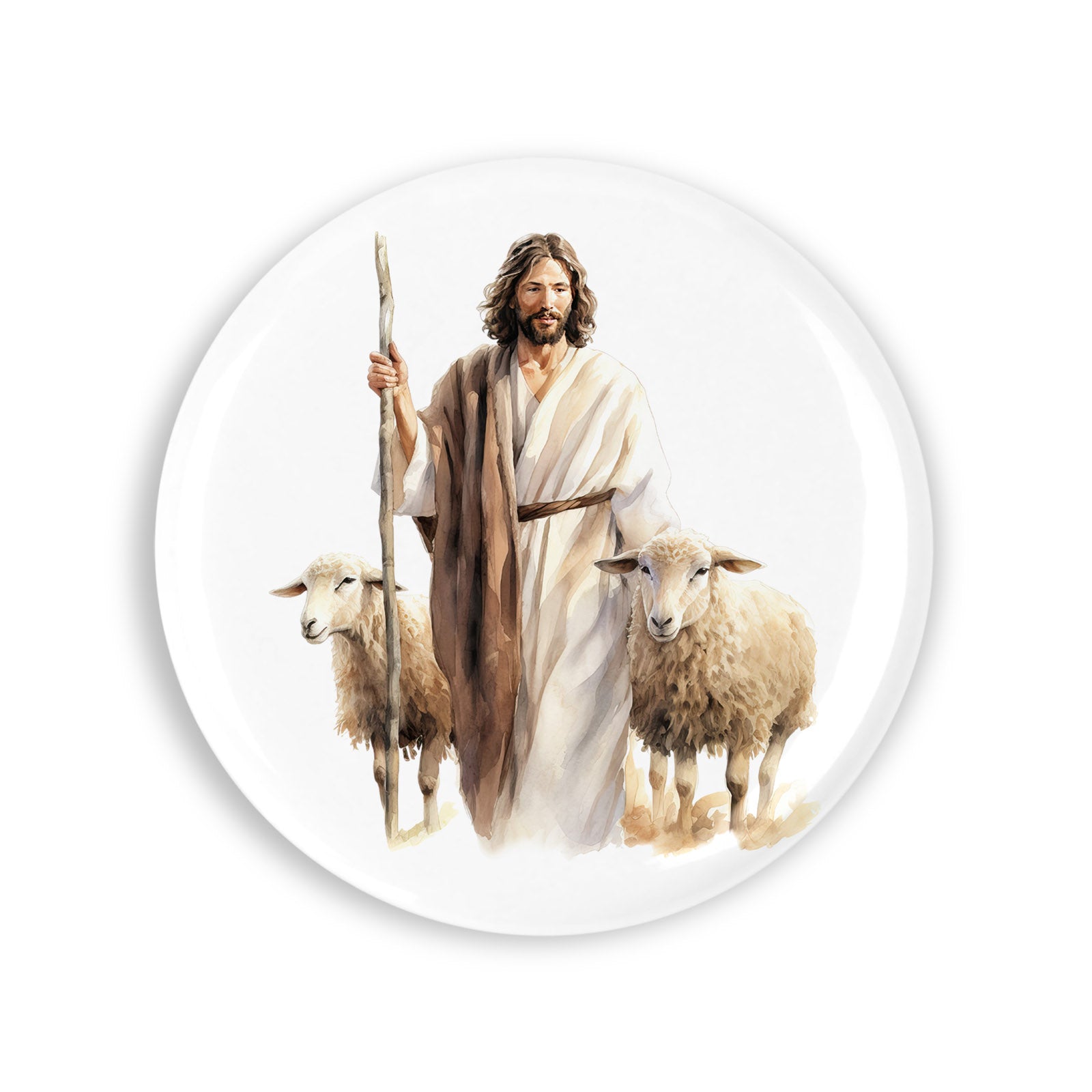Set 4 insigne, Iisus cu oile, NO4806, Metal, 44 mm, Multicolor