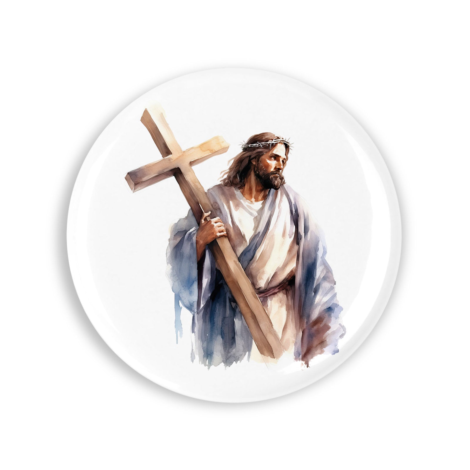 Set 4 insigne, Iisus duce crucea, NO4086, Metal, 44 mm, Multicolor