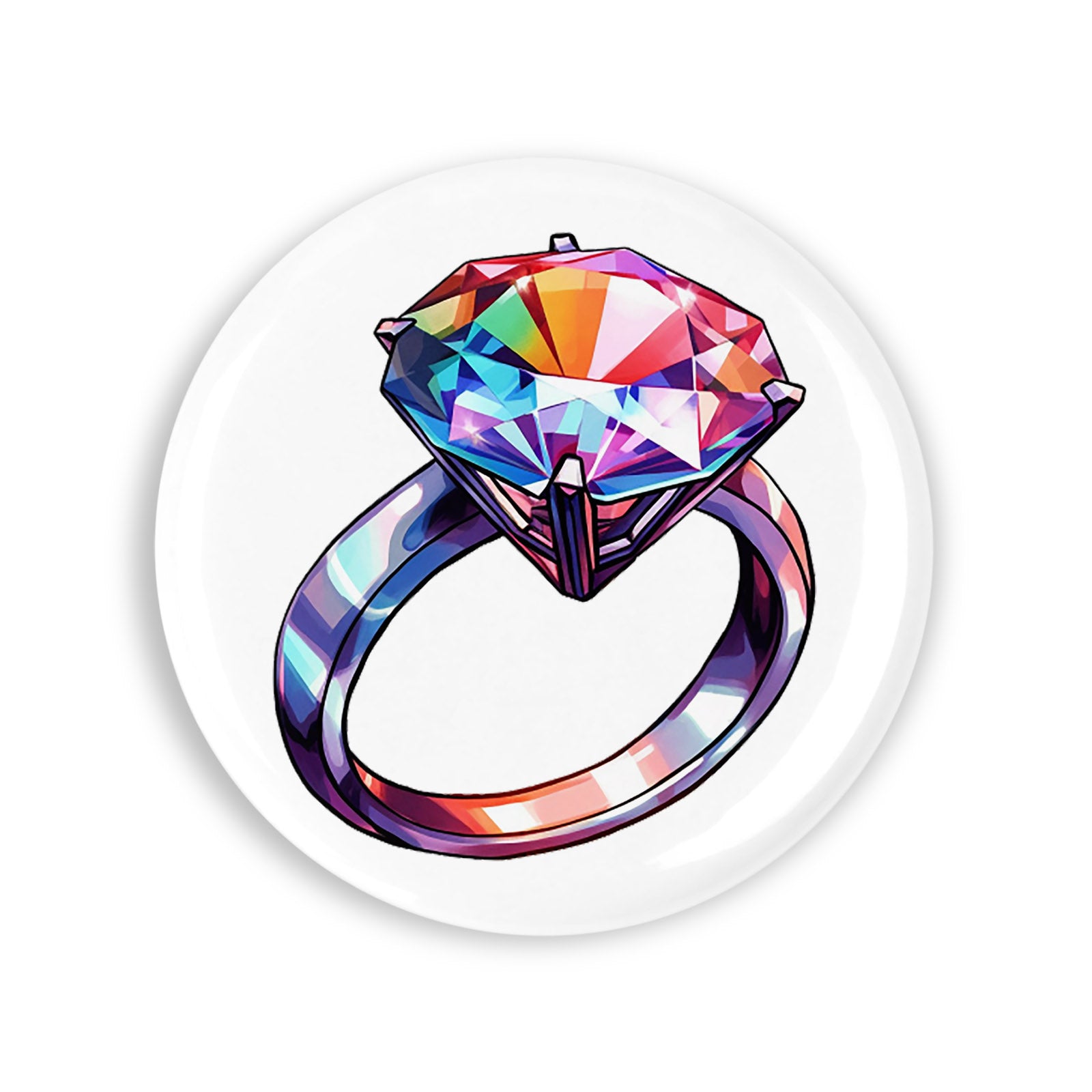 Set 4 insigne, Inel cu diamant curcubeu, NO5478, Metal, 44 mm, Multicolor