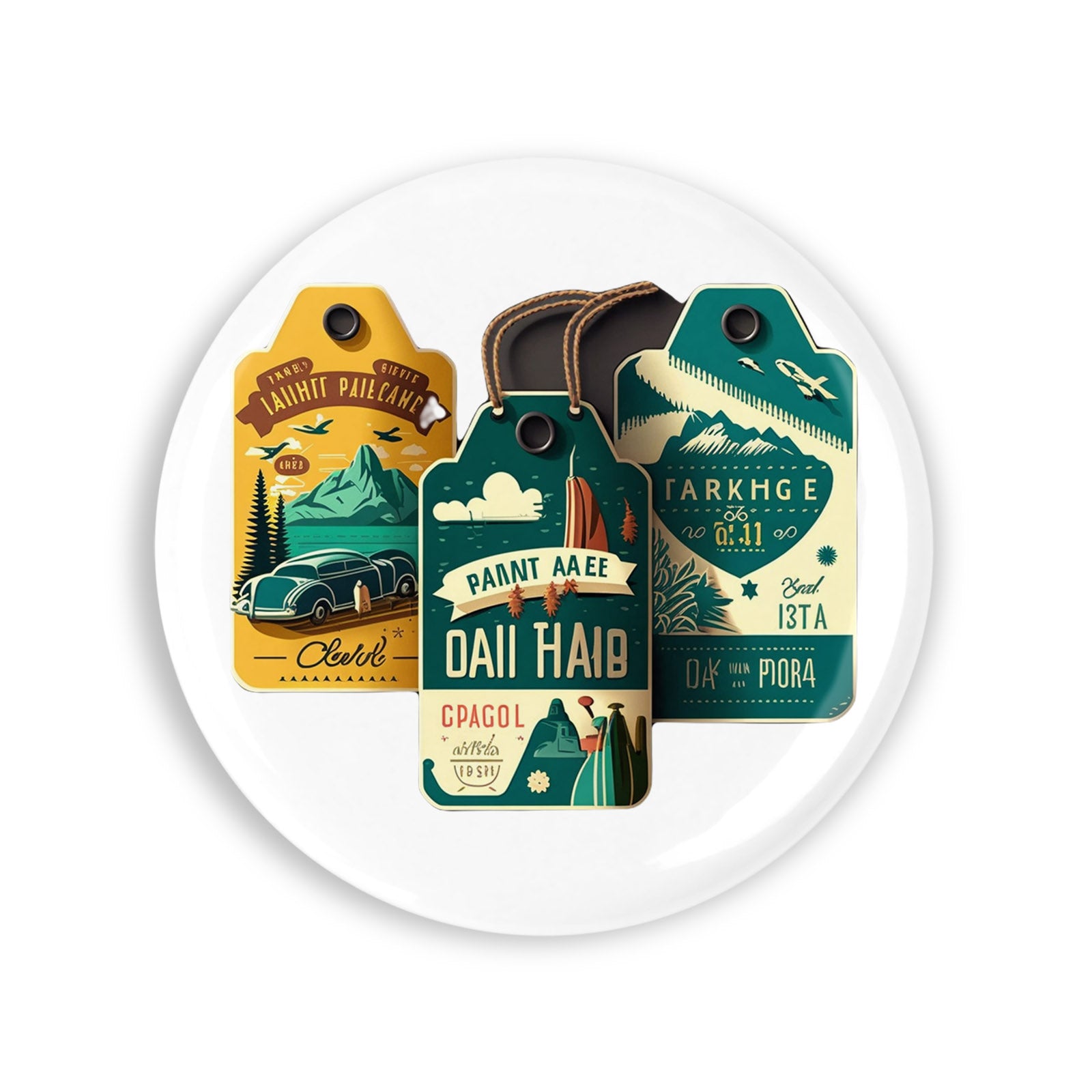 Set 4 insigne, Insemne pentru bagaje, NO10593, Metal, 44 mm, Multicolor